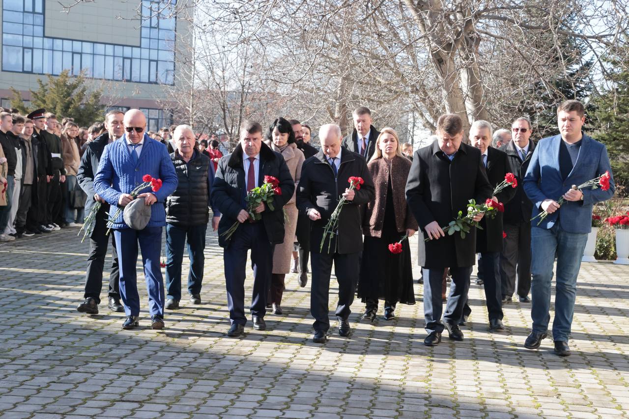 Первый заместитель председателя Государственного Совета РК Сергей Цеков в своем выступлении отметил, что открытие такого мемориала в стенах ведущего вуза — это не только акт памяти, но и мощный воспитательный ресурс. Патриотизм, по его словам, воплощается в конкретных делах и профессионализме, в верности своему делу.