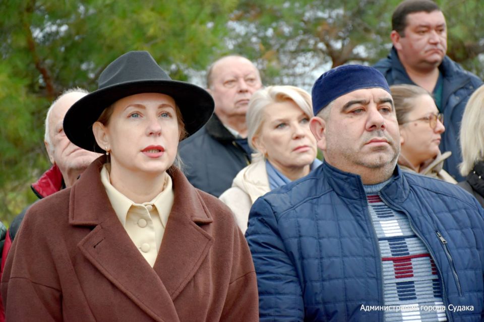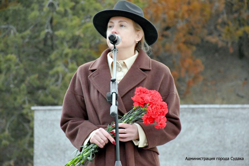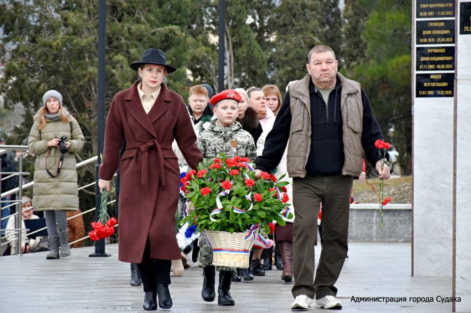 Перед собравшимися с торжественной речью выступили Глава муниципального образования муниципальный округ Судак, Председатель Судакского городского совета Дарья Дейнеко и ветеран боевых действий в Афганистане, руководитель судакских общественных организаций «Долг» и «Боевое братство» Геннадий Маркоза. Со стихотворением выступил воспитанник патриотического клуба «Единство и сила», сын погибшего героя СВО Иван Глухоедов.