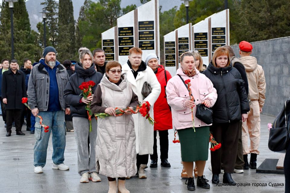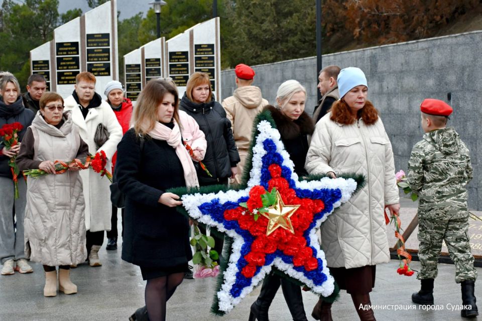 Память погибших воинов судакчане почтили минутой молчания и возложили цветы к Мемориалу ветеранам локальных войн и военных конфликтов.