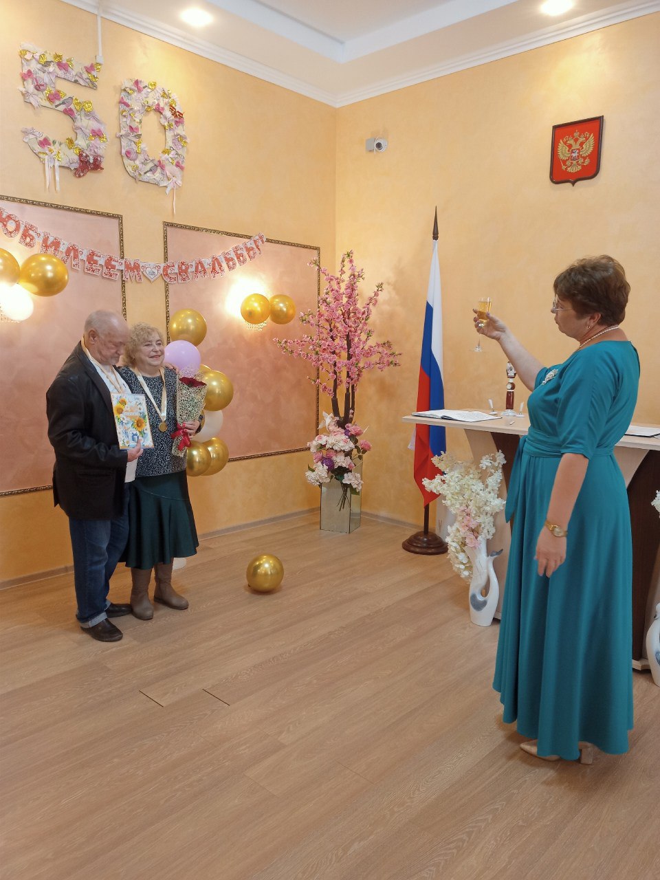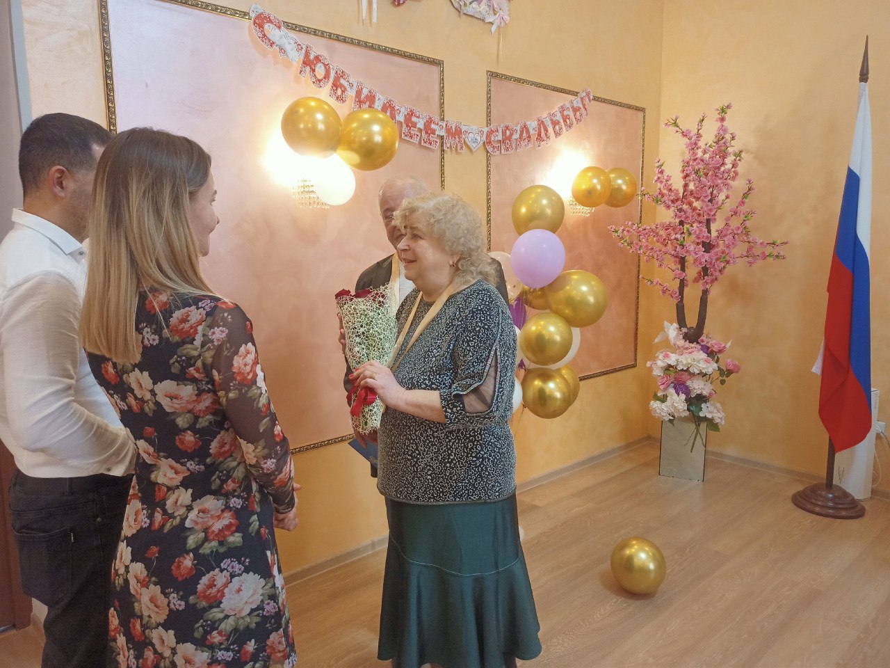 Алуштинский городской отдел ЗАГС организовал торжественное мероприятие в честь 50-летия совместной жизни супругов Сергея Петровича и Надежды Валентиновны Тяжевых – их «золотой свадьбы».