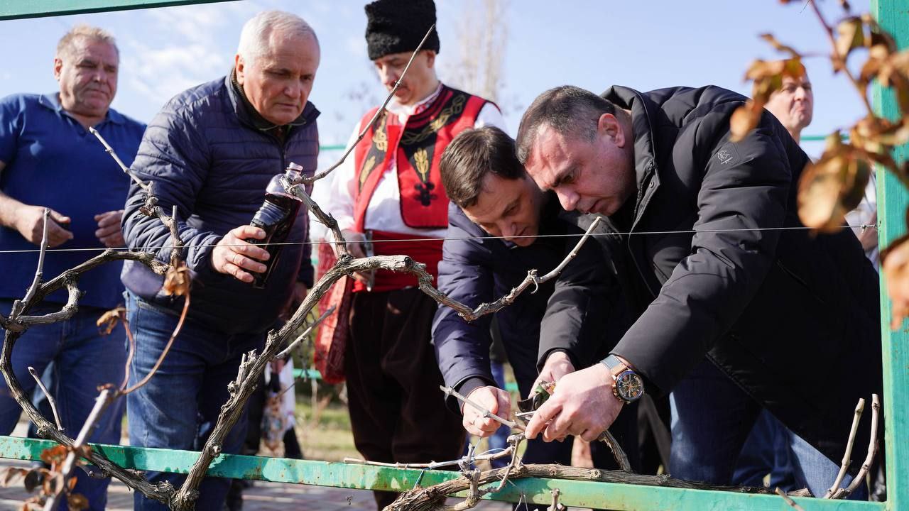 исполнение обряда ритуальной обрезки лозы, выбор Царя виноградарей и виноделов, соревнования профессиональных обрезчиков винограда;