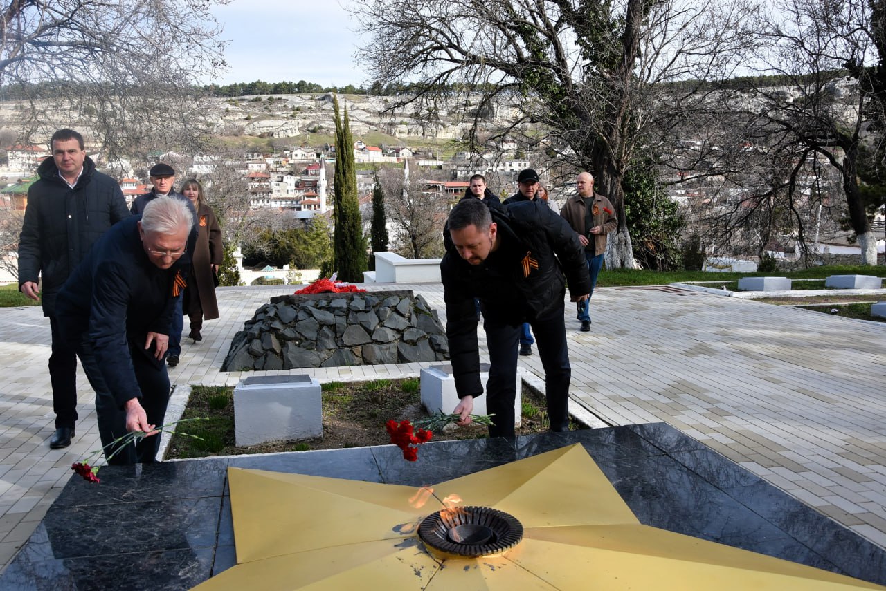 Накануне Дня защитника Отечества в Бахчисарае возложили цветы к памятным знакам