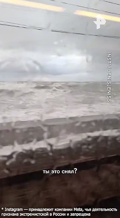 Черное море искупало электричку, следовавшую из Сочи. Волны окатили состав во время движения, что повергло пассажиров в восторг.