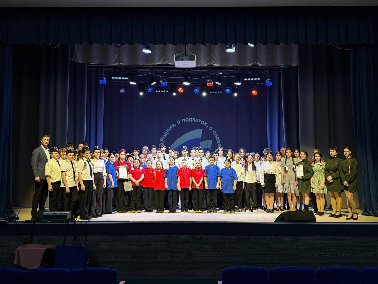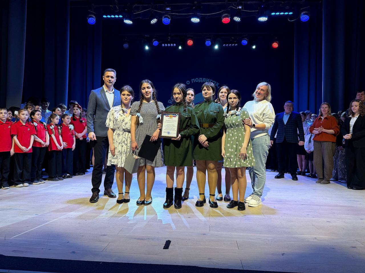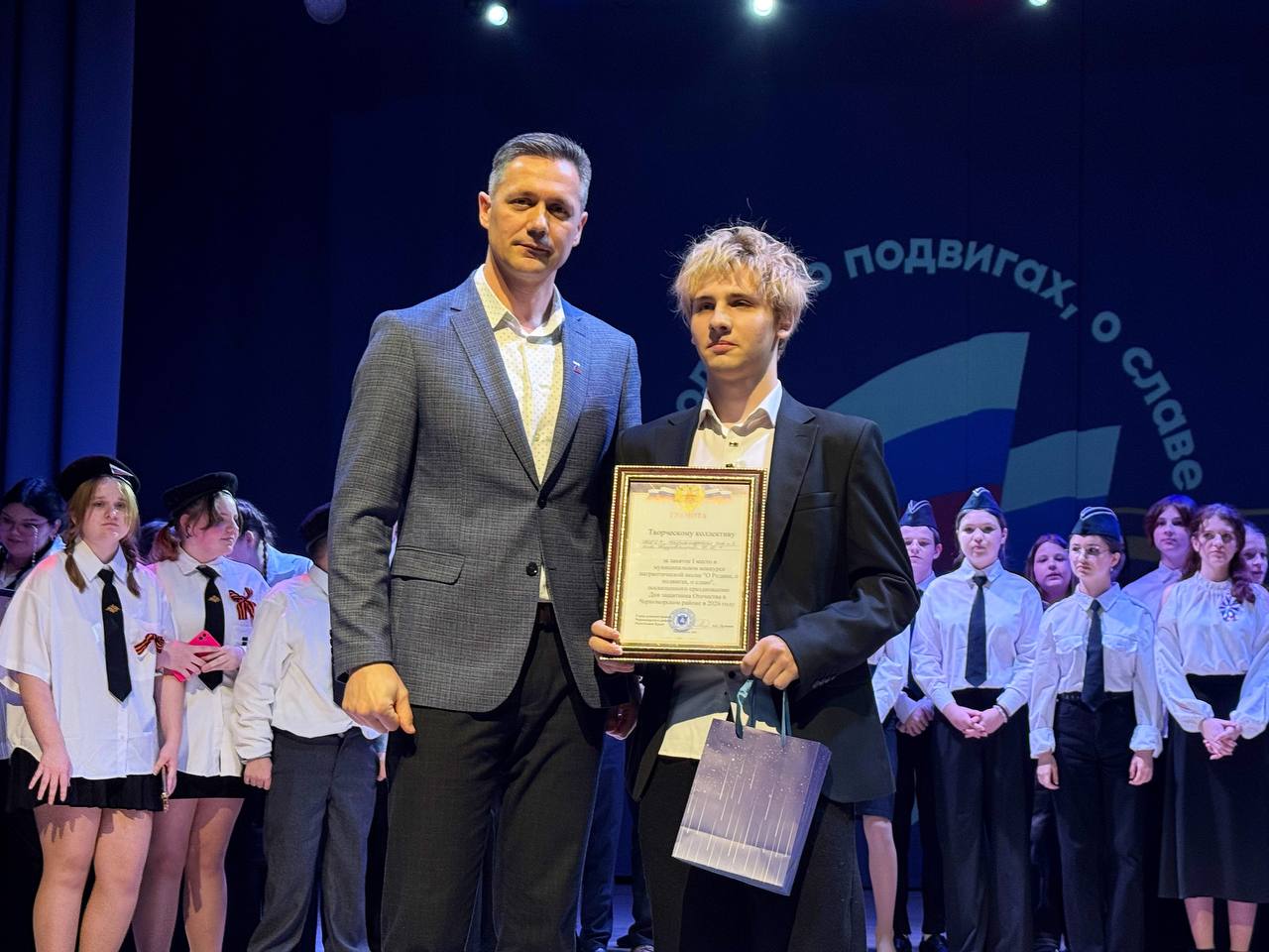 Вместе с Алексеем Шипицыным мы открывали это мероприятие. 13 номеров, 13 историй, и в каждой — гордость за нашу страну. Все школы района показали высокий уровень подготовки, но конкурс есть конкурс.