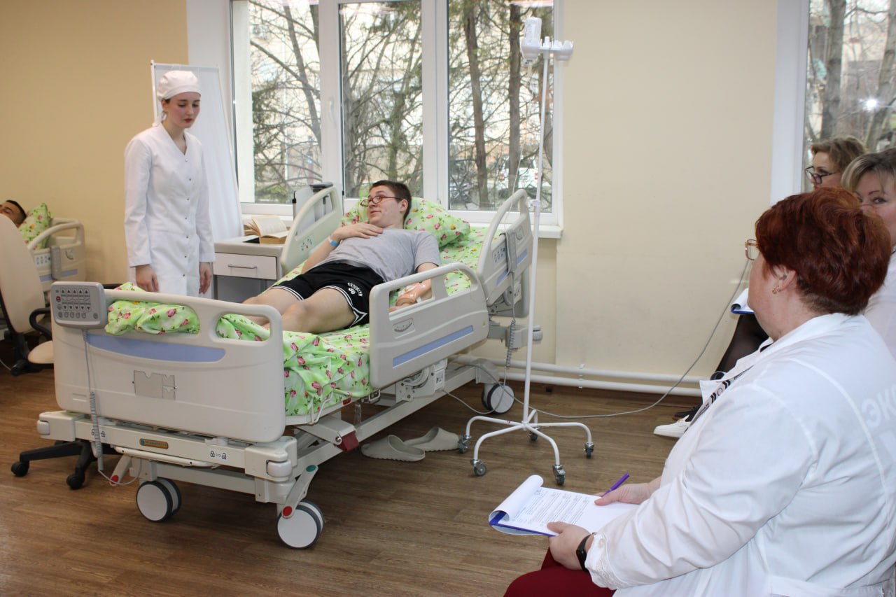 В Крымском медицинском колледже организована площадка по компетенции «Медицинский и социальный уход». Здесь участники демонстрируют свои знания и навыки по оказанию комплексной помощи пациентам различных возрастных групп, включая проведение медицинских манипуляций, гигиенических процедур, психосоциальной поддержки и ведение медицинской документации.