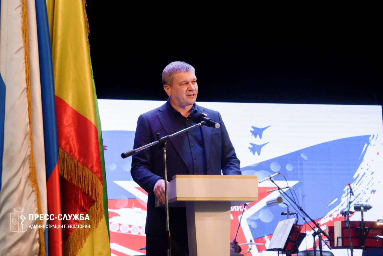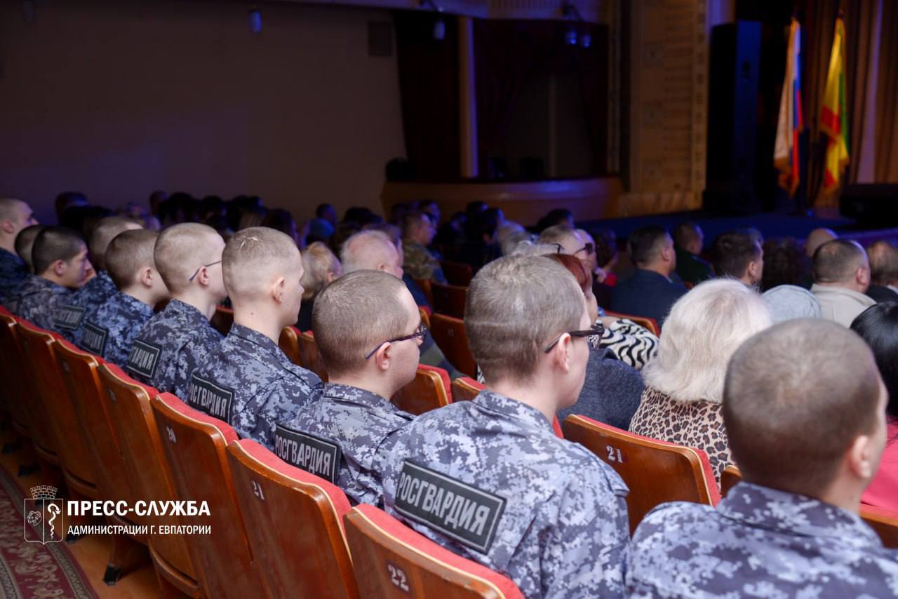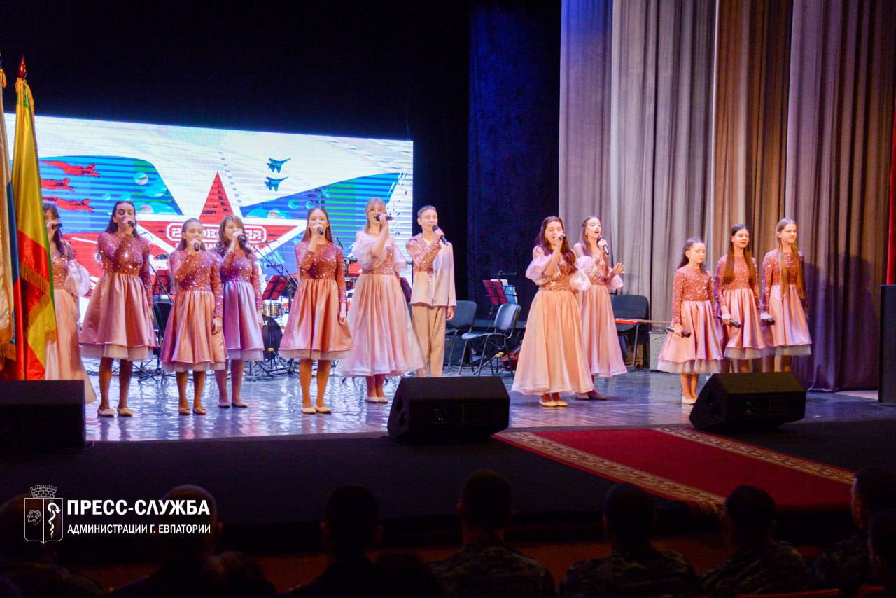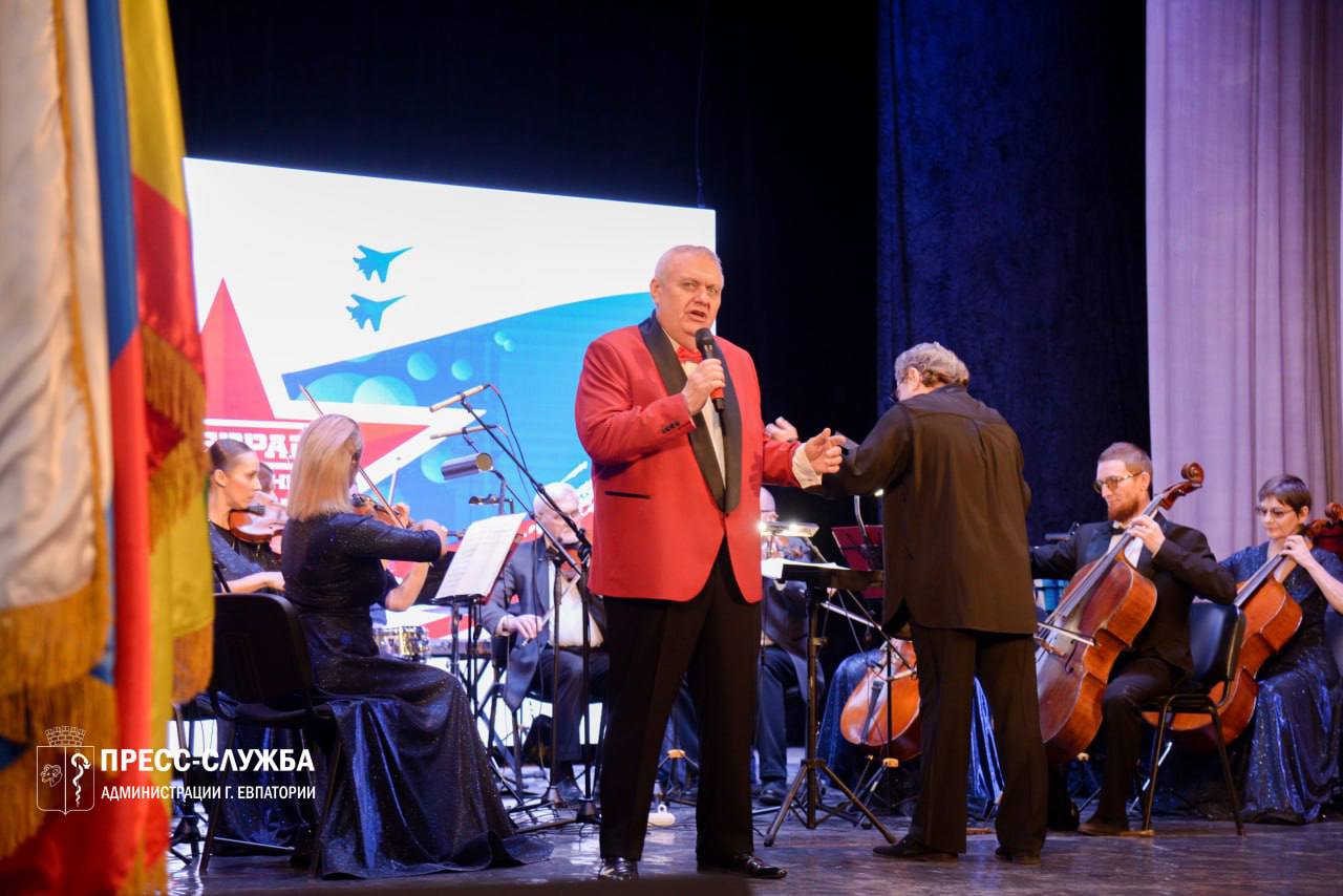 В Евпатории состоялся праздничный концерт, приуроченный к предстоящему Дню защитника Отечества. В зале собрались военнослужащие, участники специальной военной операции, ветераны и т.д.