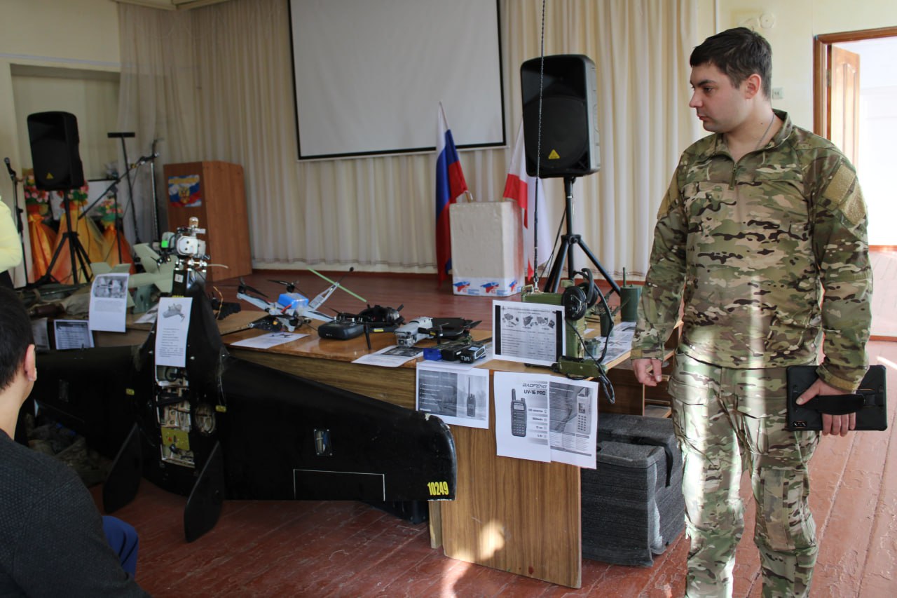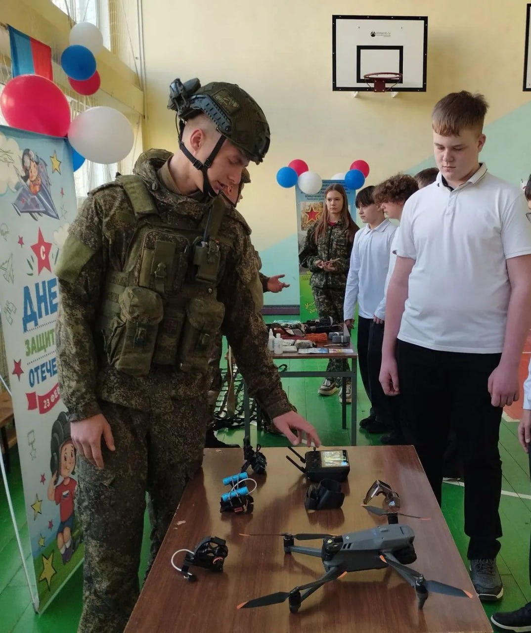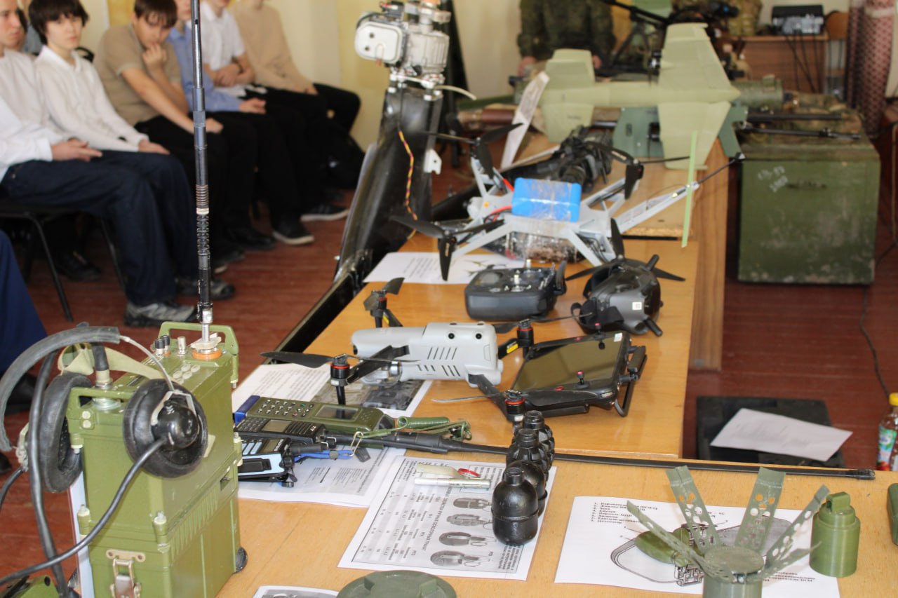 На уроках ученикам показали современное вооружение, экипировку солдат РФ, объяснили принципы работы БПЛА-квадрокоптера, средства связи и основы оказания первой помощи. Также детям рассказали о правилах транспортировки раненых.