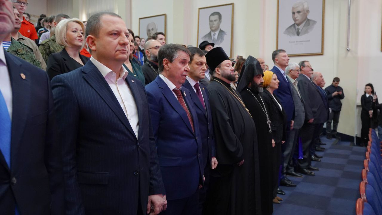 Кроме этого, выступили почетные гости, среди которых руководство Совета министров Республики Крым, Государственного Совета Республики Крым, исполнительных органов, ветераны Специальной военной операции, члены Комитета семей воинов Отечества Республики Крым, национально-культурных объединений, религиозных организаций, общественности, представители СМИ, культуры, образования, высших учебных заведений, кадетских классов, волонтеры Победы, организации «Движение Первых».