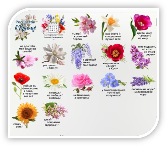 Цветочный весенний набор стикеров от нашего спецпроекта «Расцветай в Крыму» здесь