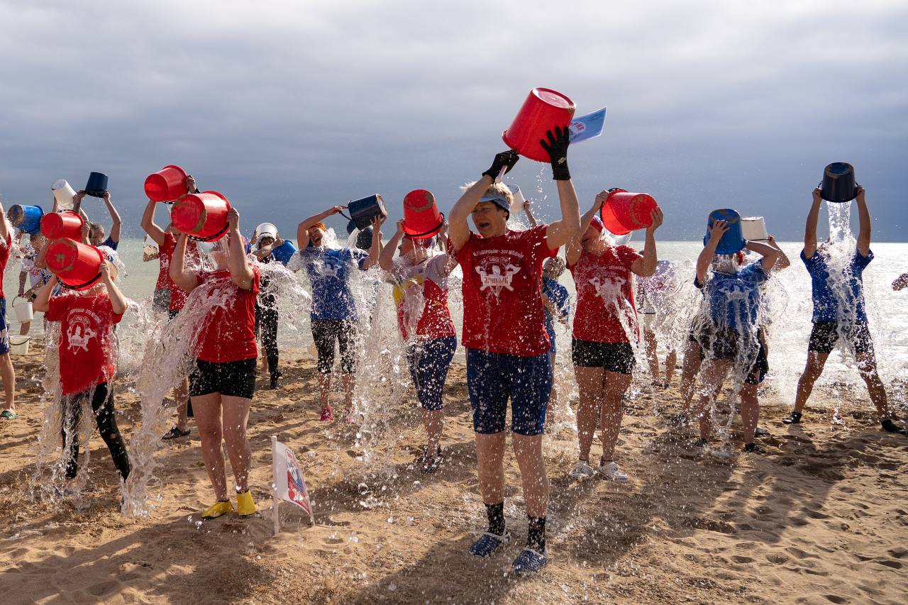 Сегодня в массовая акция обливания холодной водой прошла на евпаторийском пляже. В ней приняли участие более пятидесяти человек из разных общественных организаций, а также участники специальной военной организации.