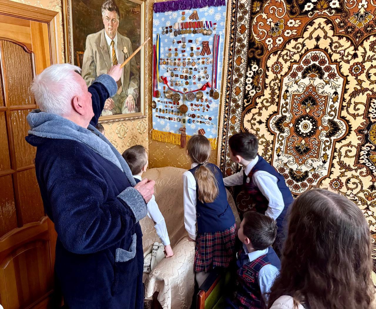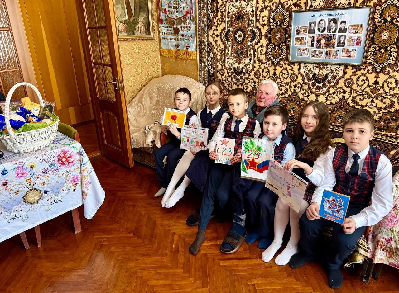 Анатолий Петрович встретил юных гостей с улыбкой и открытым сердцем. Школьники читали ветерану тёплые строки поздравлений, дарили сделанные своими руками открытки и рисунки, в каждую из которых вложили частичку детской души.