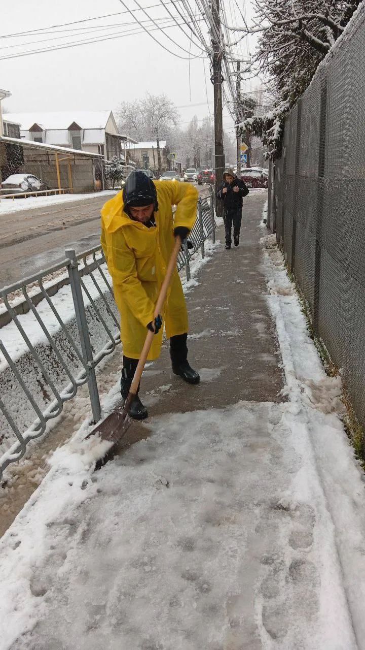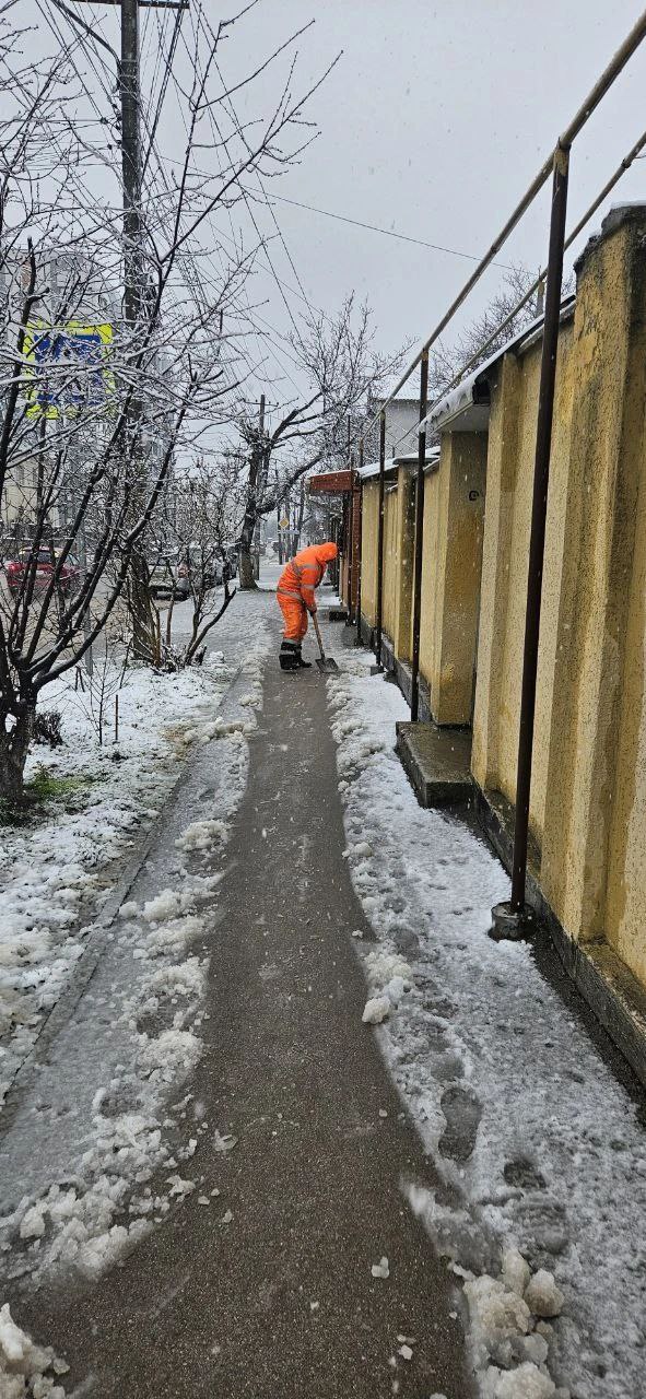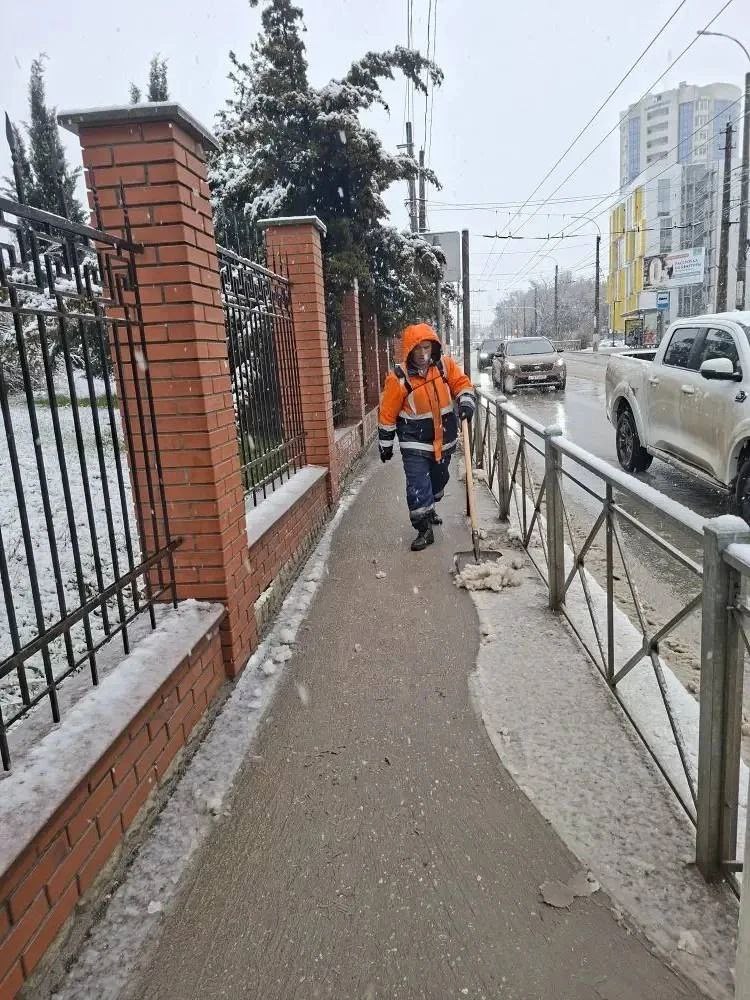 С раннего утра порядка 450 дворников МБУ «Город» и подрядных организаций задействованы в уборке снега и обработке реагентом тротуаров, пешеходных дорожек, остановок общественного транспорта и других городских территорий.