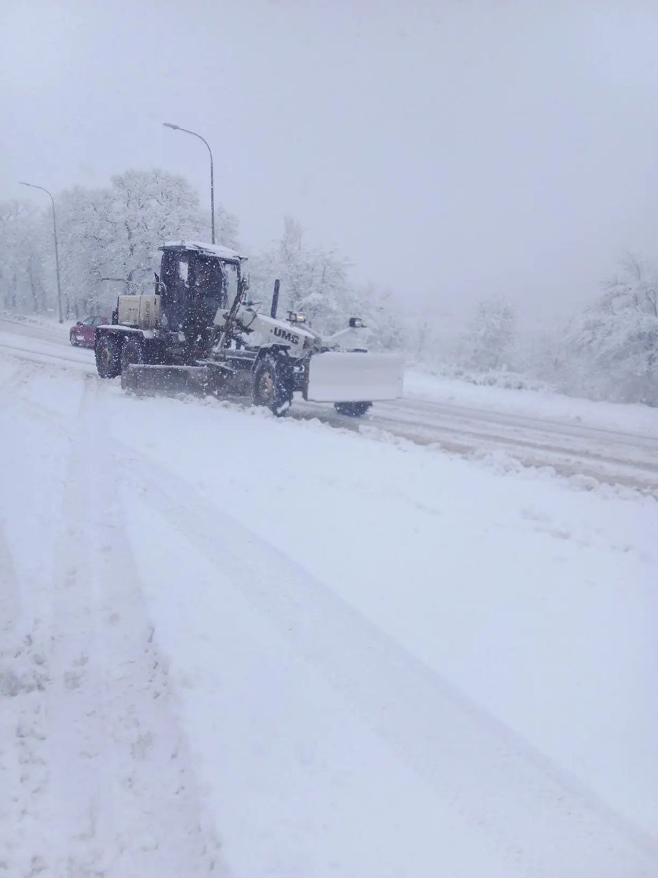 Алушта +4°. Ангарский перевал -1°, снег. Шапка Партизан 0°, снег. Покрытие влажное, обработанное.