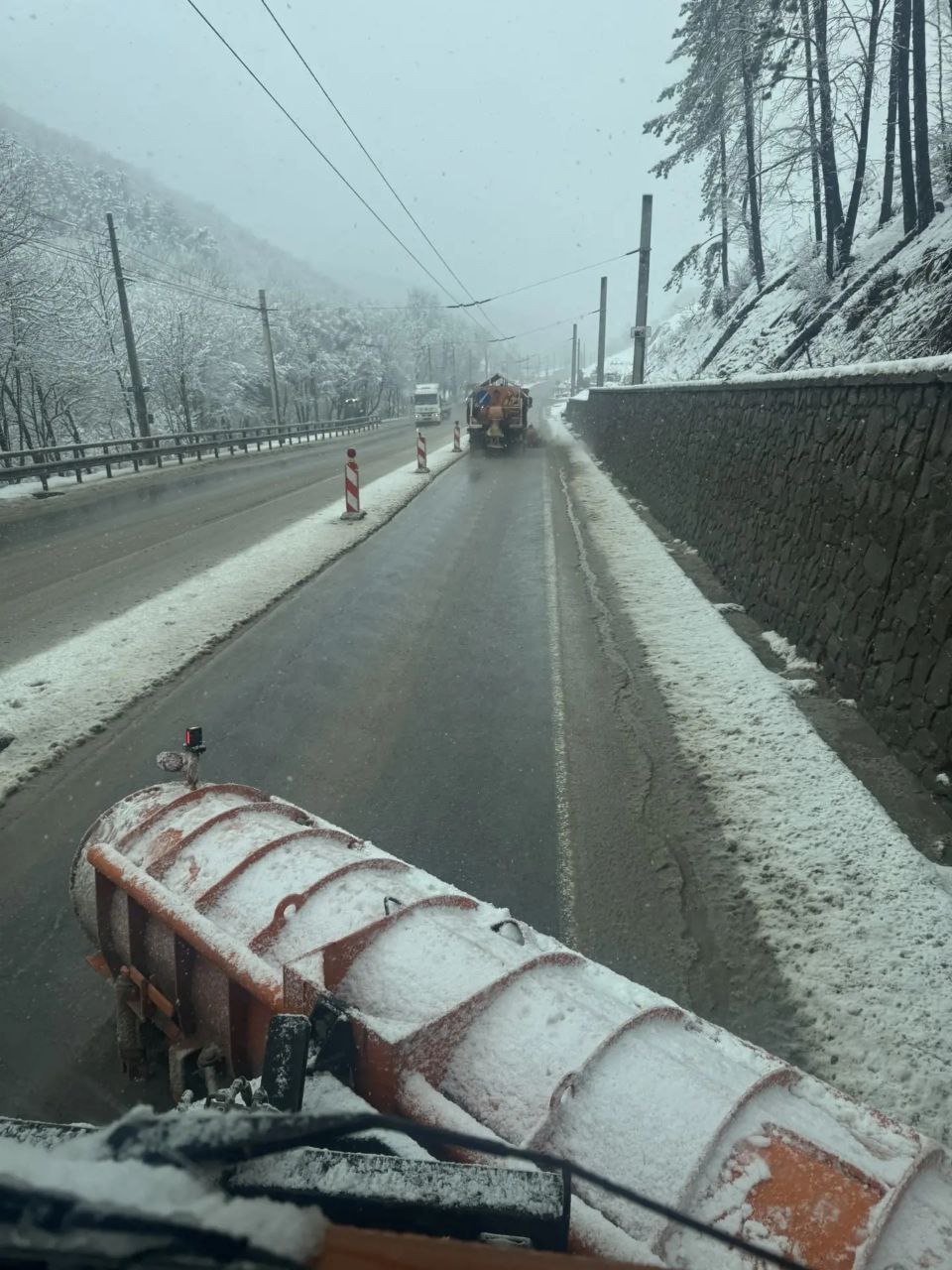 ГРЭС +1°, Симферополь 0°, Доброе 0°. Снег, шуга, покрытие мокрое, обработанное.