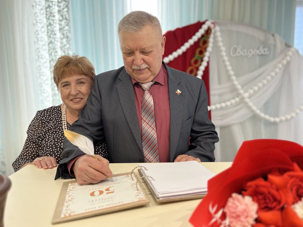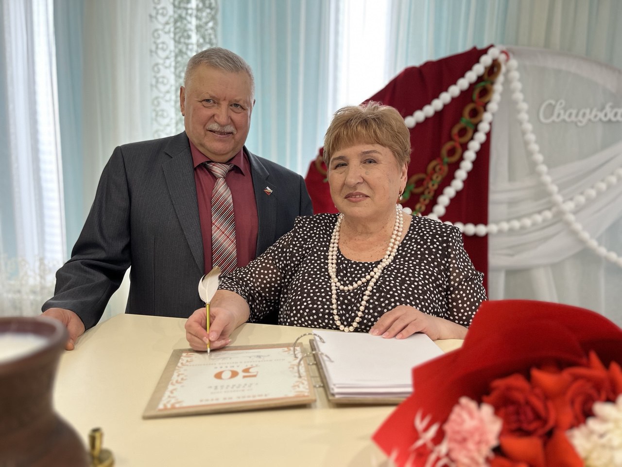 50 лет назад, стоя в ЗАГСе, супруги Глечиковы дали друг другу обещание прожить долгую и счастливую жизнь. Сегодня они вновь подтвердили это искреннее желание.