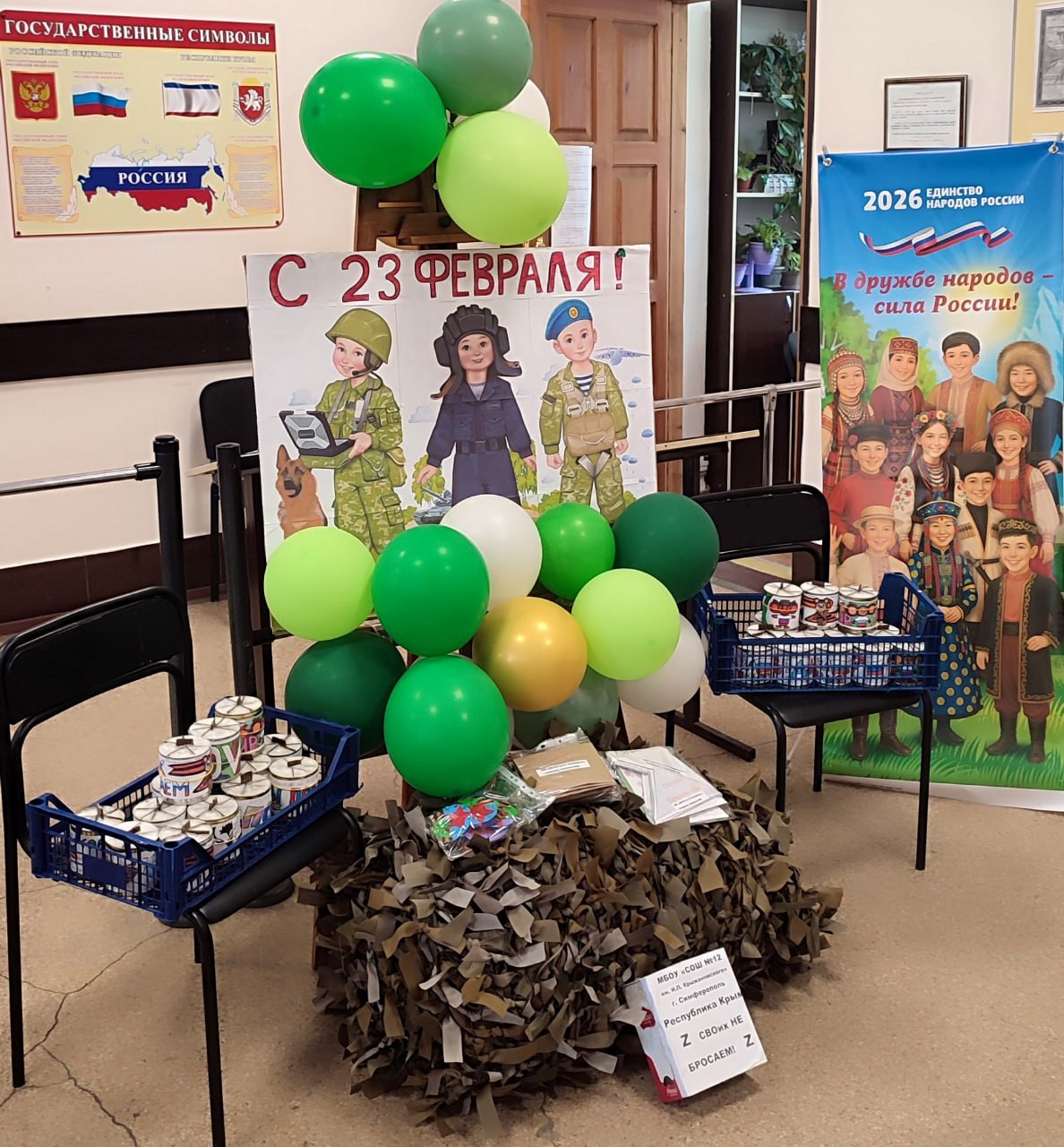 В МБОУ «СОШ №12 им. И. П. Крыжановского» в преддверии Дня защитника Отечества по инициативе советника директора по воспитанию Борисенко Светланы Валентиновны передала подарки для бойцов СВО через волонтёров АНО «Весточка и Z Крыма».