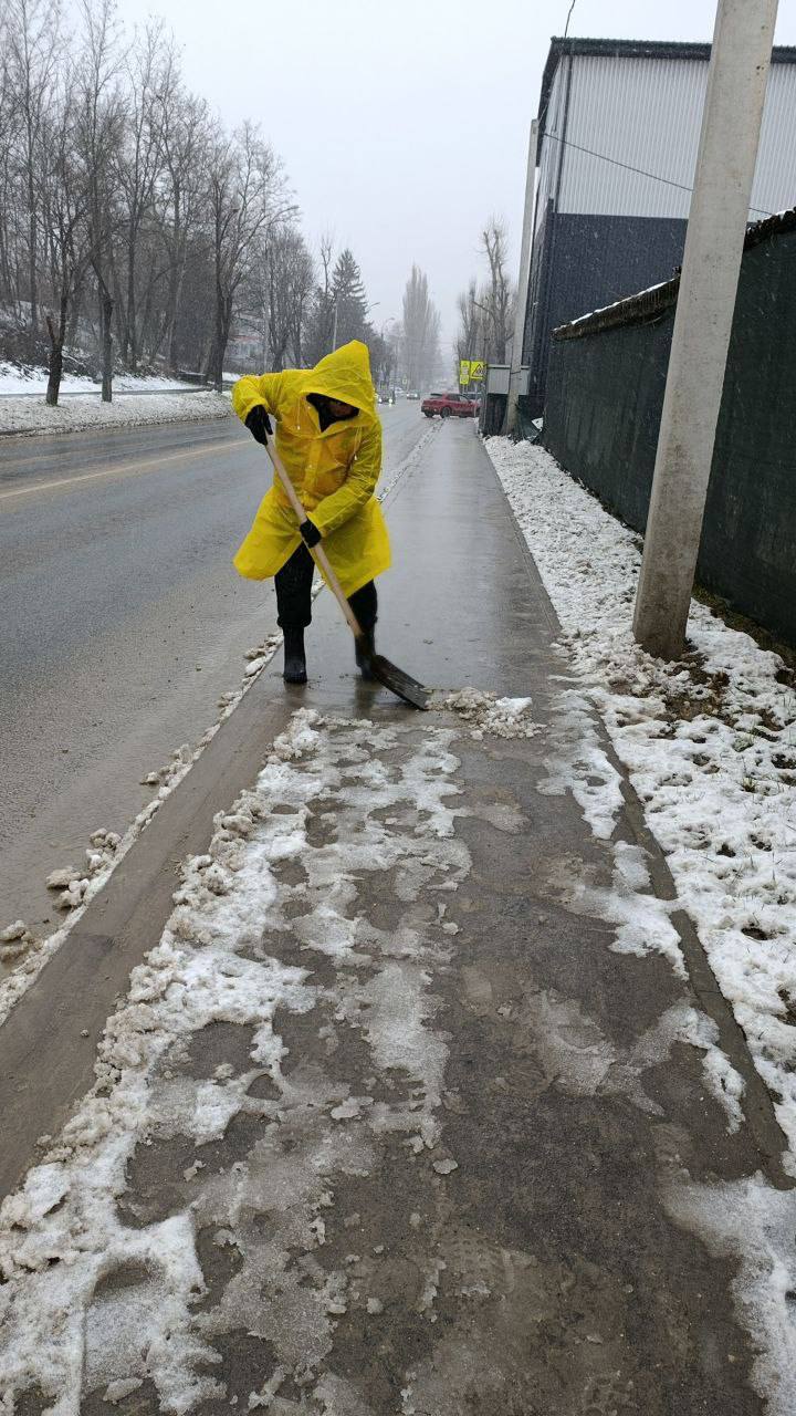 Снег убирают круглосуточно — на улицах задействованы более 450 дворников и 12 комбинированных дорожных машин.