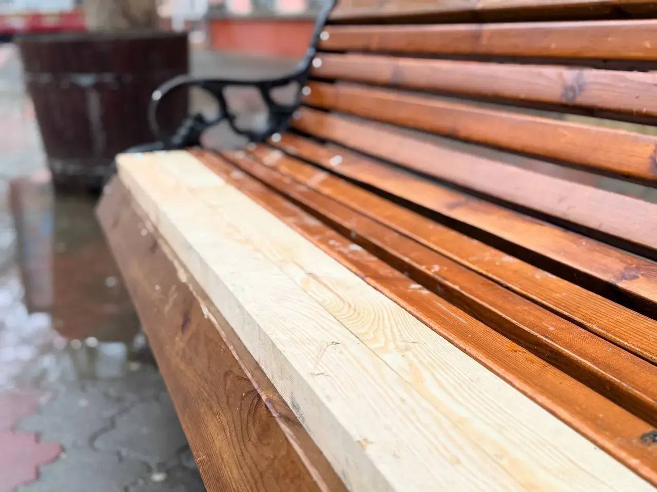 Сегодня сотрудники Службы городского хозяйства заменили сломанные доски на нескольких скамейках по ул. Ленина. В дальнейшем их покроют специальным лаком для защиты дерева от термитов и влаги. Работу продолжат по всему городу.