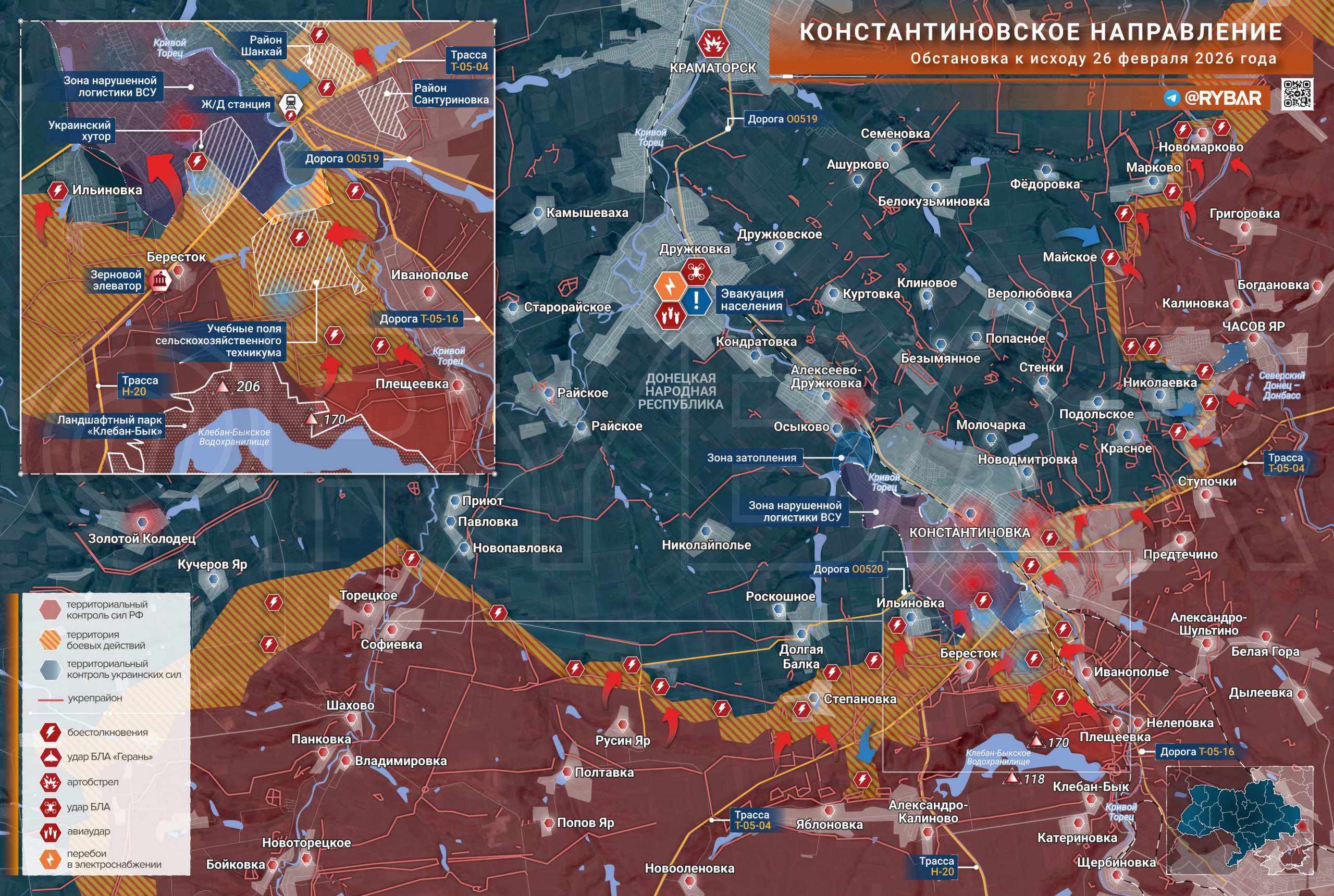 На Константиновском направлении российские войска ведут бои на южной окраине одноименного города в окрестностях сельскохозяйственного техникума.