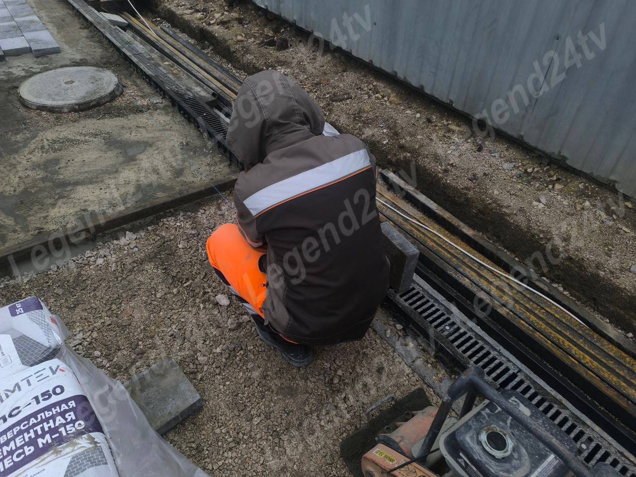 Готовность объекта 76%. Почти по всему периметру подпорной стены монтируют железный каркас. Он выполнен из нержавеющей стали с усиленными кронштейнами. Чтобы конструкция была прочной, надёжной и прослужила долгий срок. В завершении выполнят облицовку камнем. Сейчас строители приступили к монтажу гранитной плитки на тротуарах.