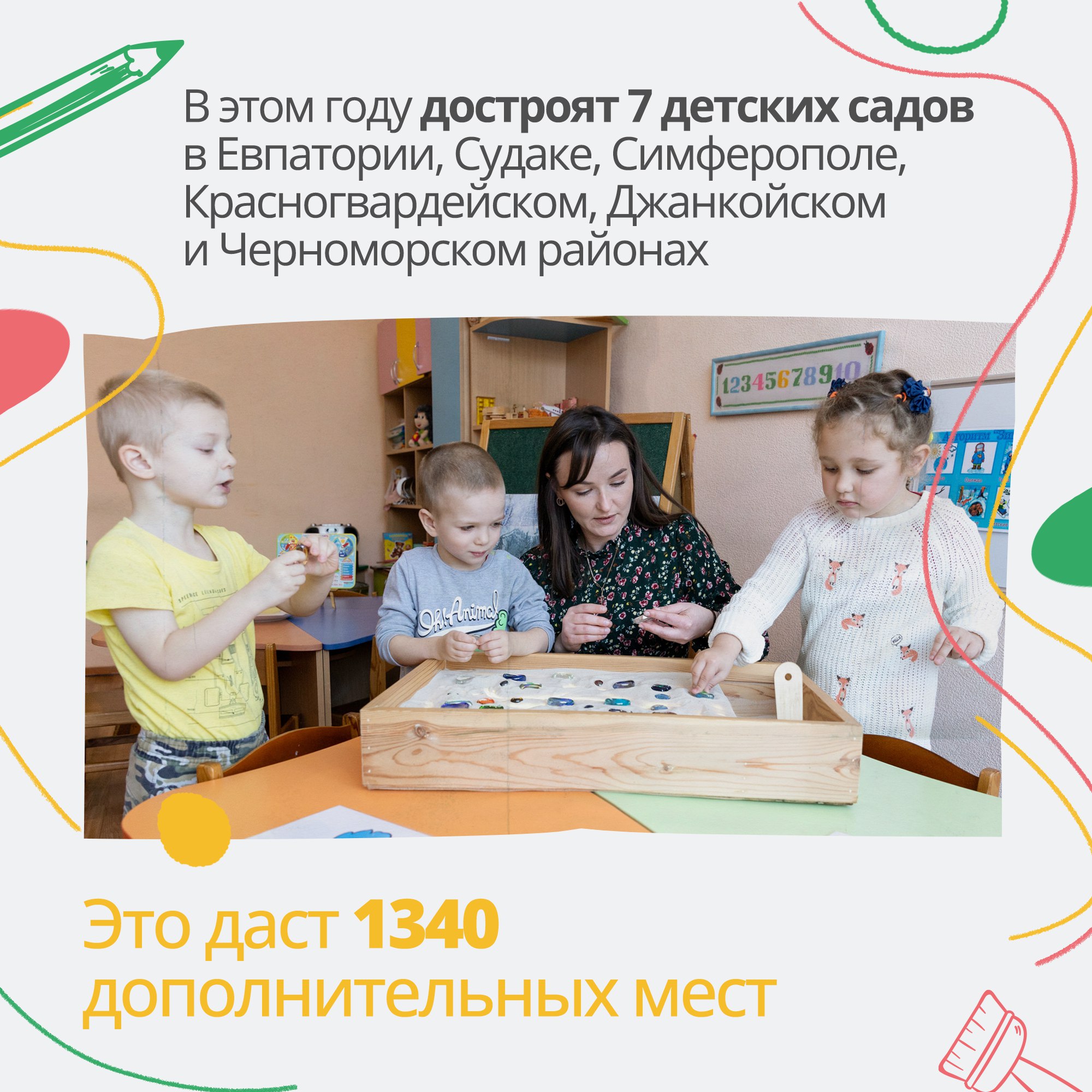 С заботой о подрастающем поколении в Крыму продолжают обновлять и строить детские сады и школы. Создание комфортных условий в учебных заведениях — это то, что нужно каждому ребёнку для успешного развития.