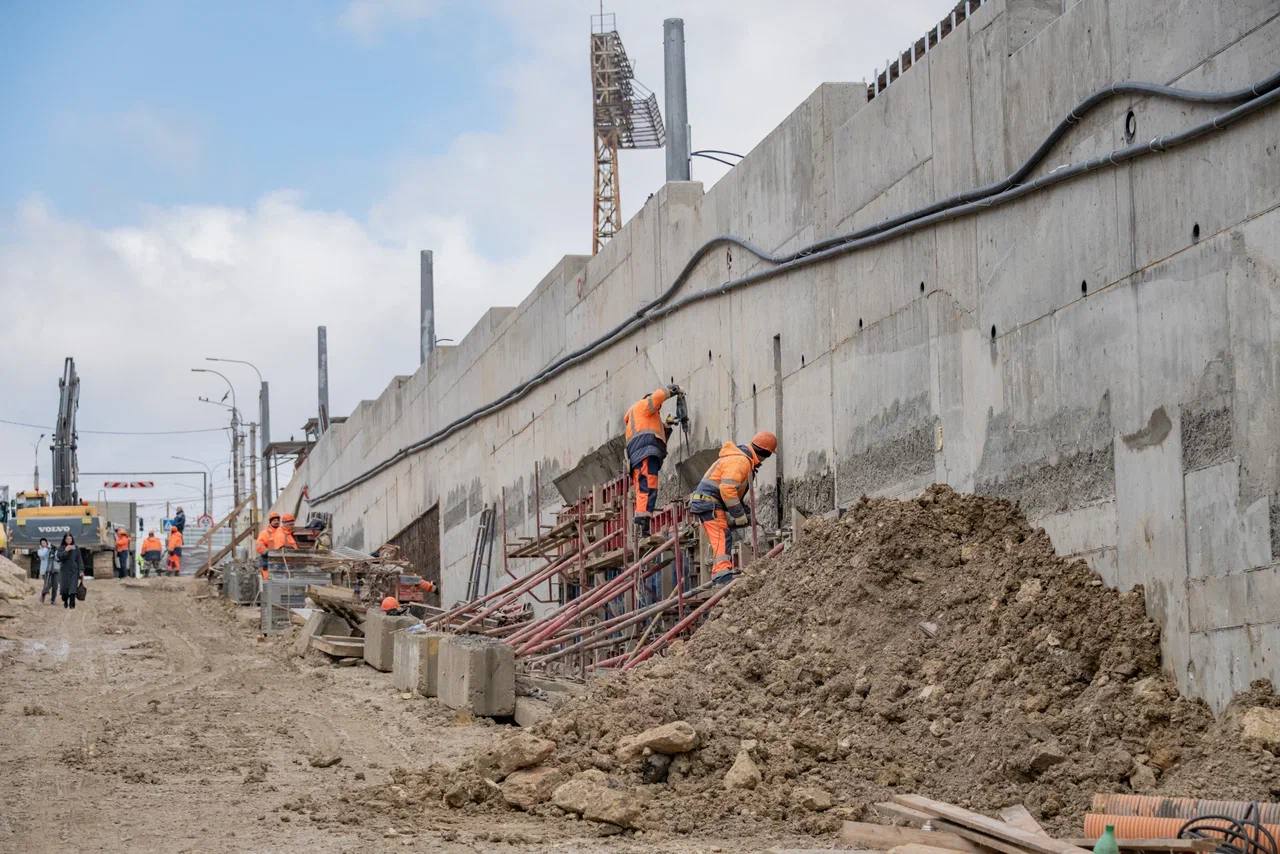 Сейчас рабочие восстанавливают конструкции подпорных стен: завершают монолитные работы и в ближайшее время приступят к облицовке фасадов южно-сутлаевским гранитом. Параллельно вышли на финишный этап устройства ливневой канализации.