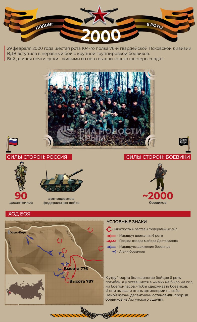6-я рота 104-го полка 76-й гвардейской Псковской дивизии ВДВ в Чечне вступила в неравный бой с крупной группировкой боевиков.