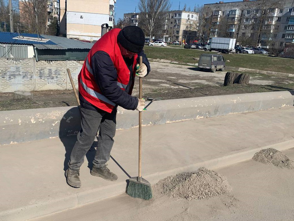 В Керчи ежедневно проводится комплексная уборка. Бригады дворников работают по всему городу, обеспечивая чистоту в разных районах.