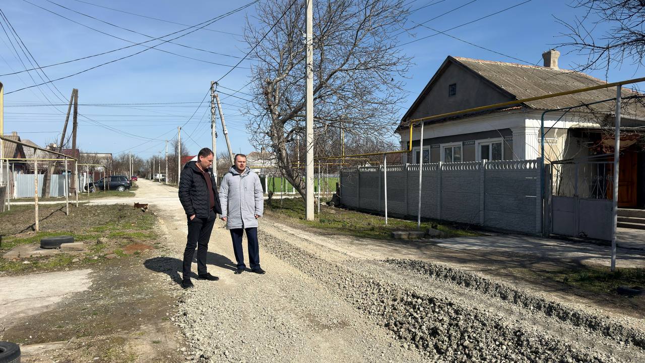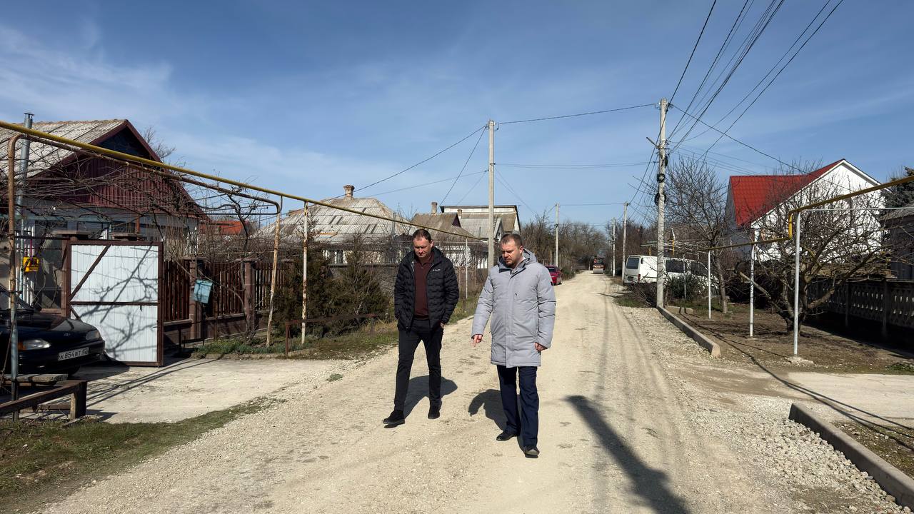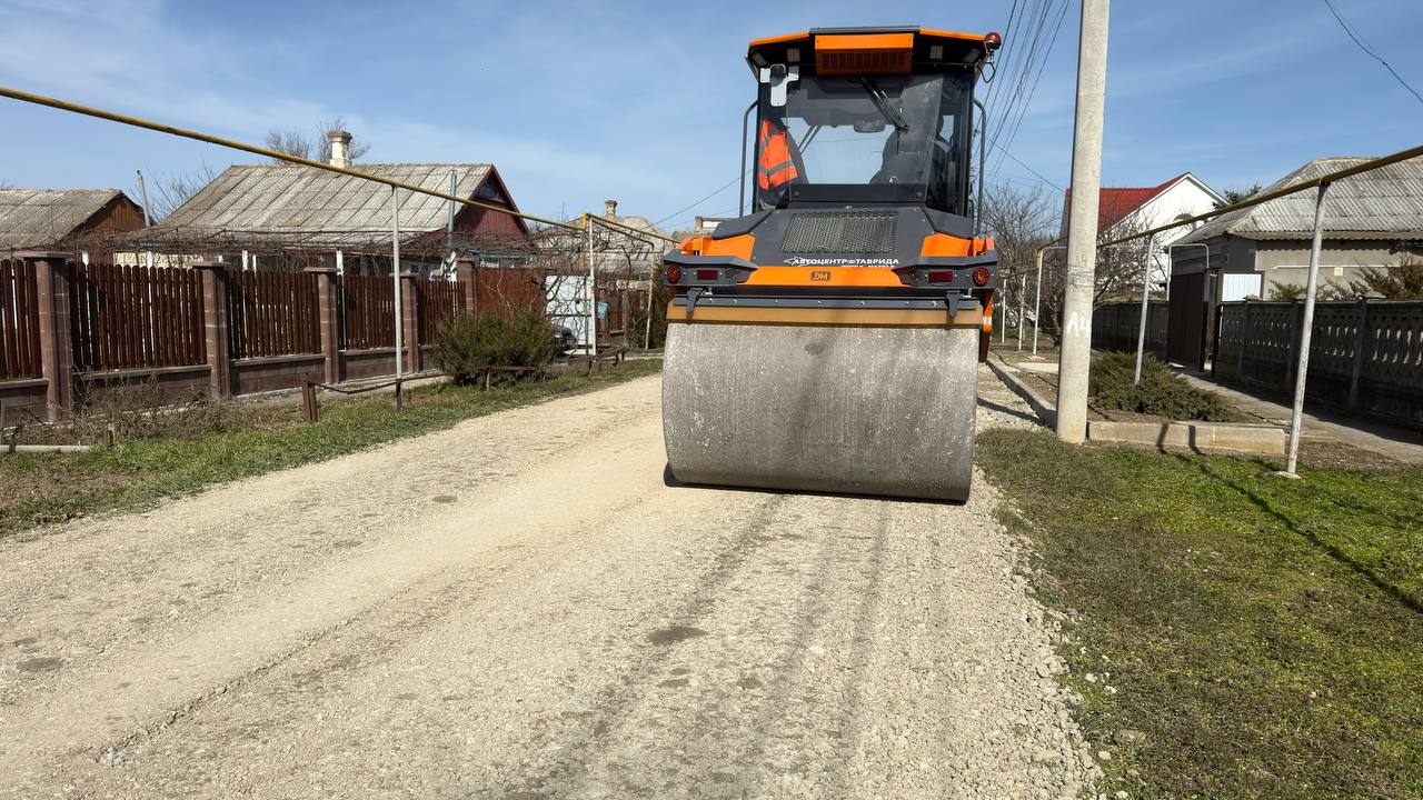 В поселке Нижнегорский. На сегодняшний день грейдирование полностью завершено уже на 6 улицах. Техника движется согласно графика.