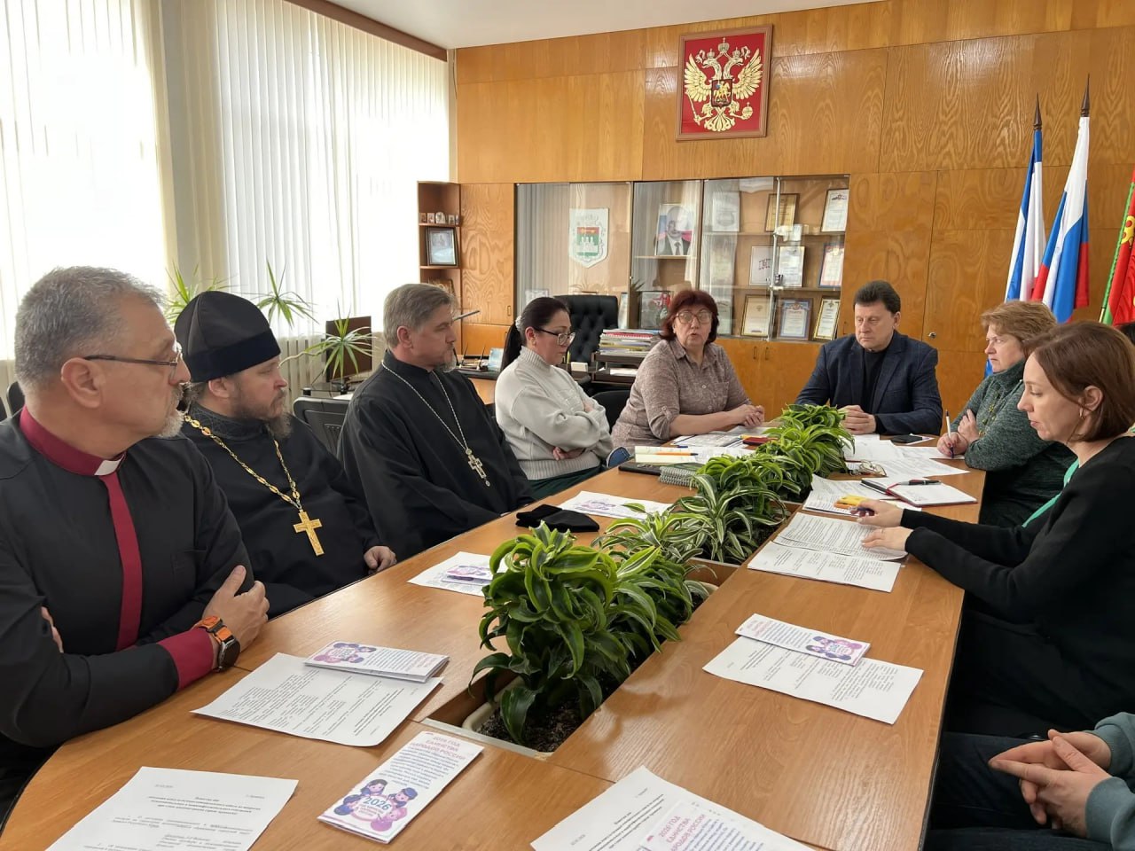 Обсудили вопросы состояния межнационального и межконфессионального согласия на территории нашего муниципального округа, профилактики идеологии терроризма и экстремизма среди населения, о порядке действий при угрозе совершения террористического акта на объектах религиозных организаций, работе с иностранными гражданами, создании в городе Армянске Армянского местного отделения общероссийской общественно-государственной организации «Ассамблея народов России".