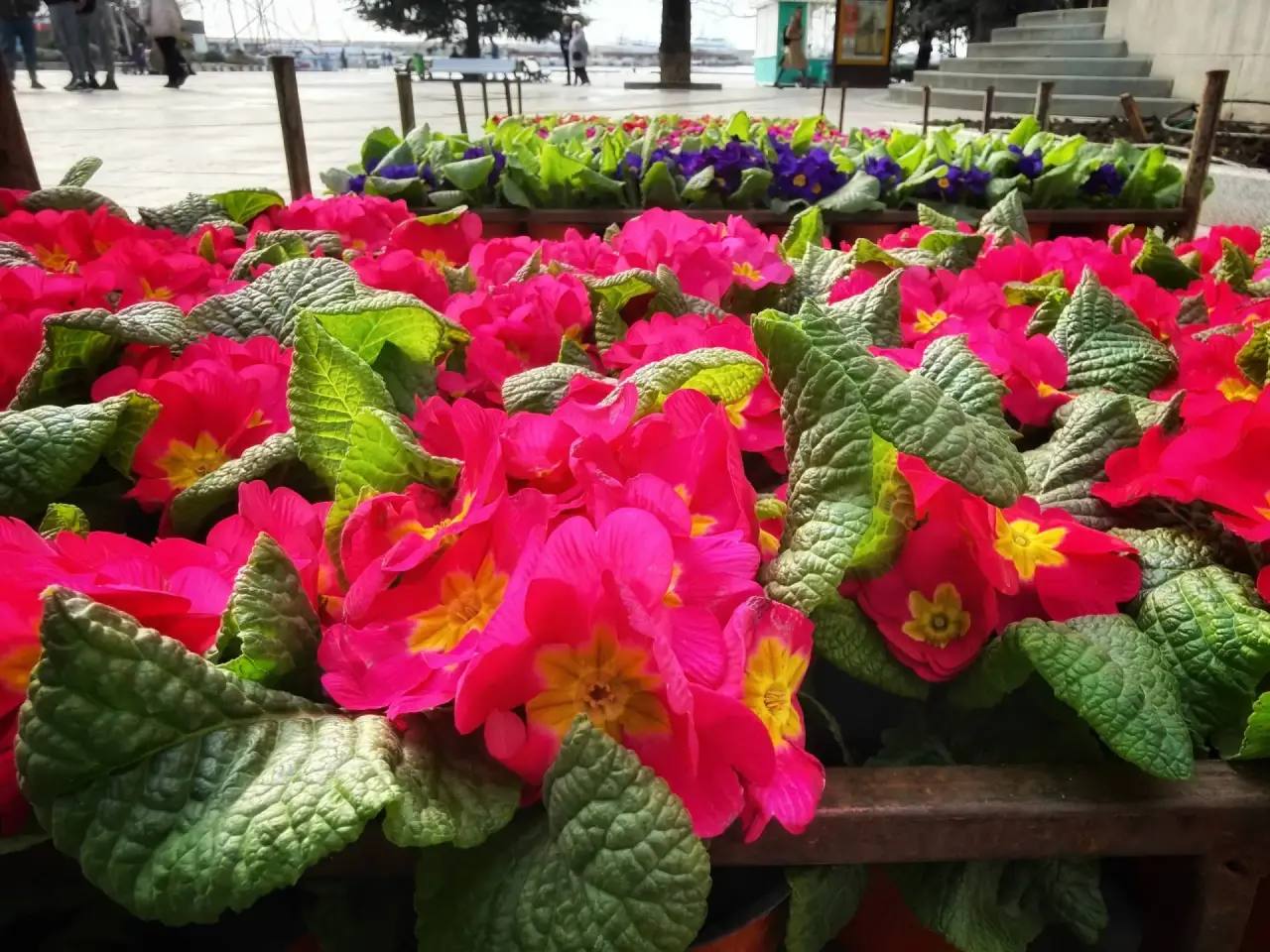 В сквере у памятника Ленину уже высадили тысячу примул разных оттенков. Скоро такие цветочные ковры украсят также набережную, Пушкинский бульвар и площадь Советскую. Всего планируется высадить три тысячи саженцев.