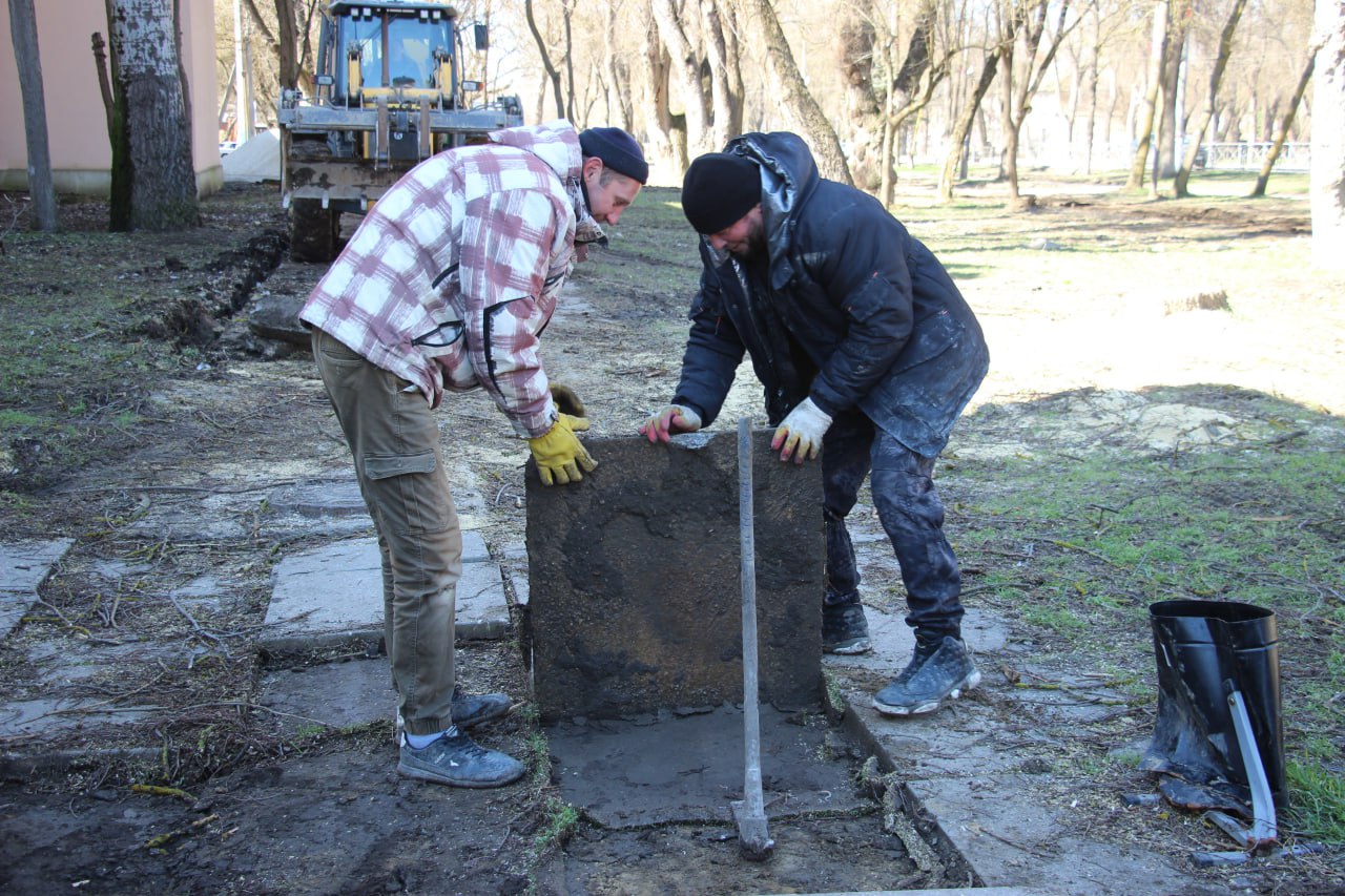 Следующим этапом станет копка траншей под прокладку коммуникаций для будущего освещения. Также проектом запланировано мощение территории, установка скамеек и урн.