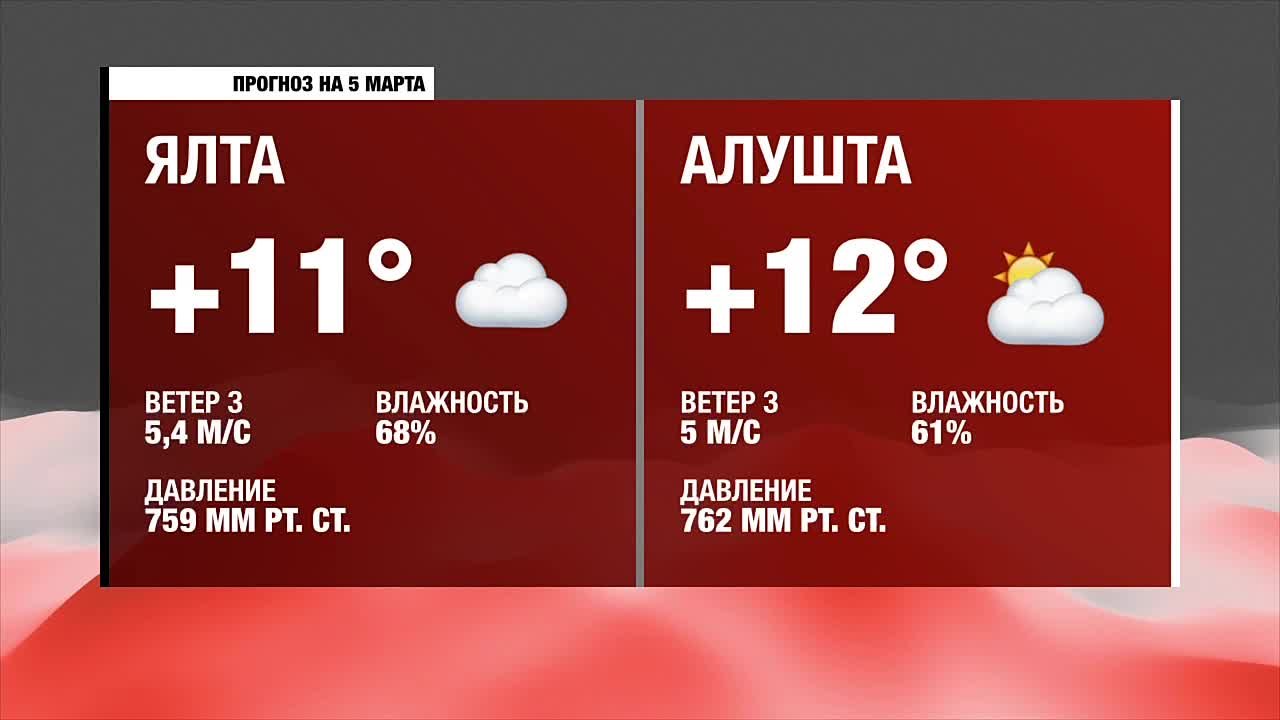 В Симферополе +9 и облачноВ Севастополе +9 и облачноВ Евпатории +9 и облачно с прояснениямиВ Черноморском +8 облачно с прояснениямиВ Джанкое +12 и облачно с прояснениямиВ Ялте +11 и облачно с прояснениямиВ Алуште +12 и облачно с прояснениямиВ Керчи +8...