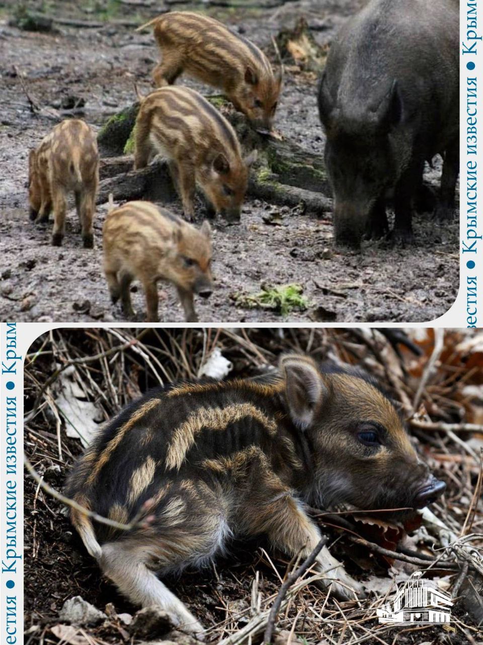 Пять маленьких полосатых кабанчиков появились на свет в национальном парке «Крымский».