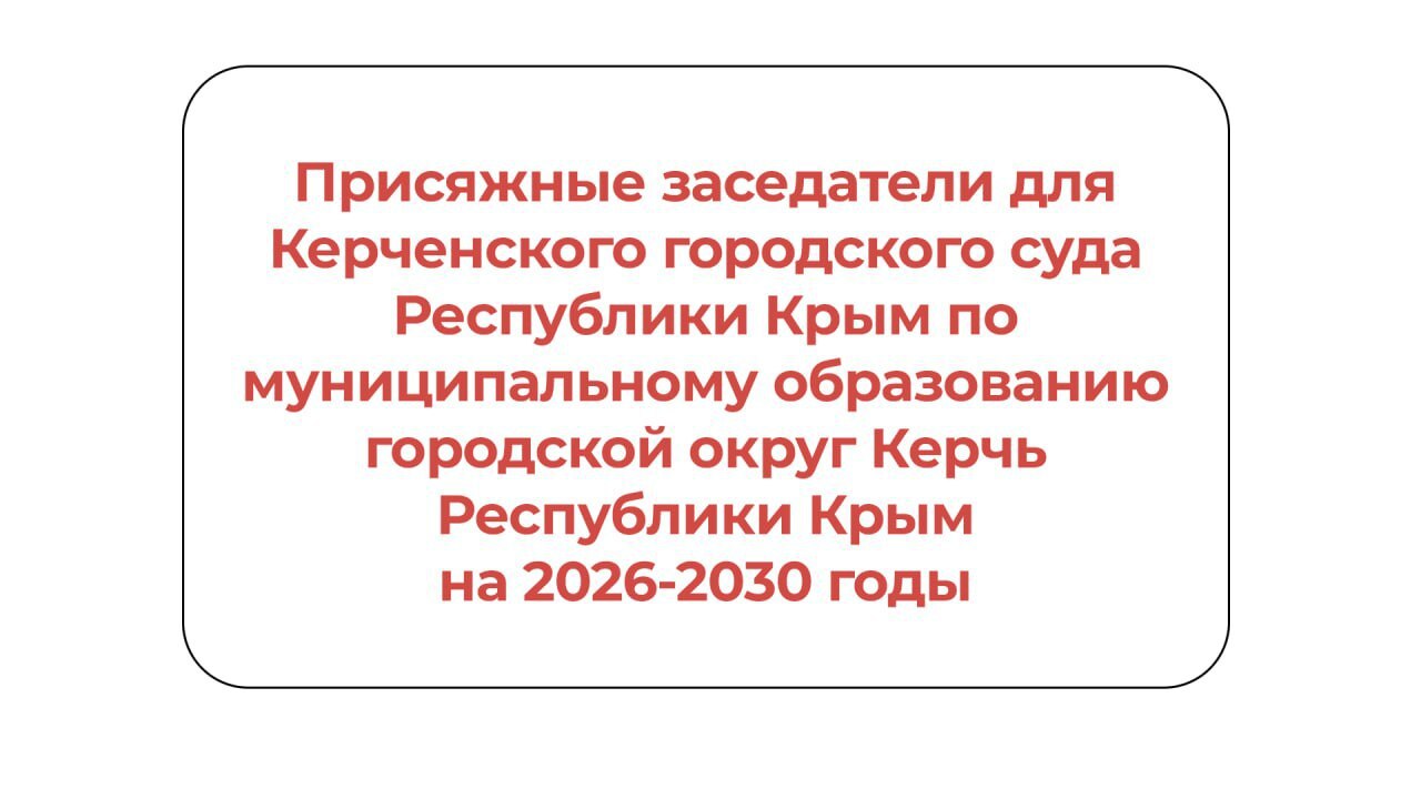 Администрация города Керчи Республики Крым извещает об окончании работы по формированию списков кандидатов в присяжные заседатели для Керченского городского суда Республики Крым по муниципальному образованию городской округ Керчь Республики Крым на 2026-2030 годы.