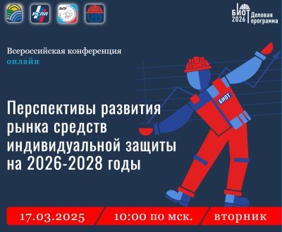 Ассоциация разработчиков, изготовителей и поставщиков средств индивидуальной защиты (Ассоциация «СИЗ») при поддержке Минтруда России, Минпромторга России, РСПП и Роструда проводит в онлайн-формате бесплатную Всероссийскую конференцию «Перспективы развития рынка средств индивидуальной защиты в 2025-2027 годах».