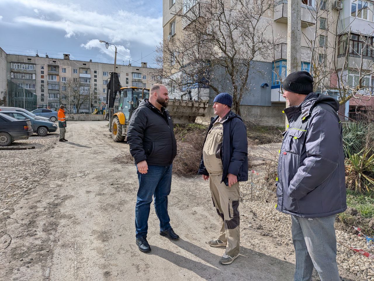 Сегодня первый заместитель главы администрации Феодосии Эмин Набиев посетил дворовые территории, где проводятся работы по капитальному ремонту для контроля за ходом их выполнения.