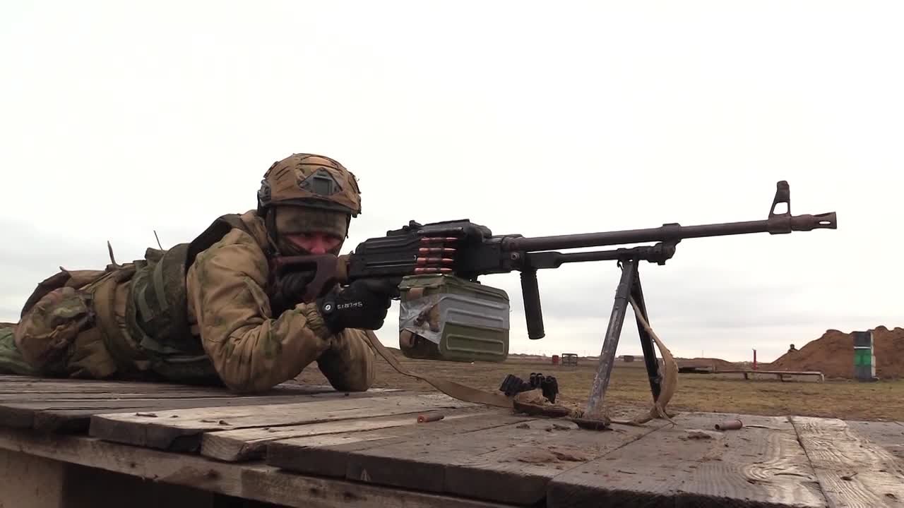 Бойцы группировки войск «Днепр» оттачивают навыки владения пулемётом Калашникова в тыловом районе СВО