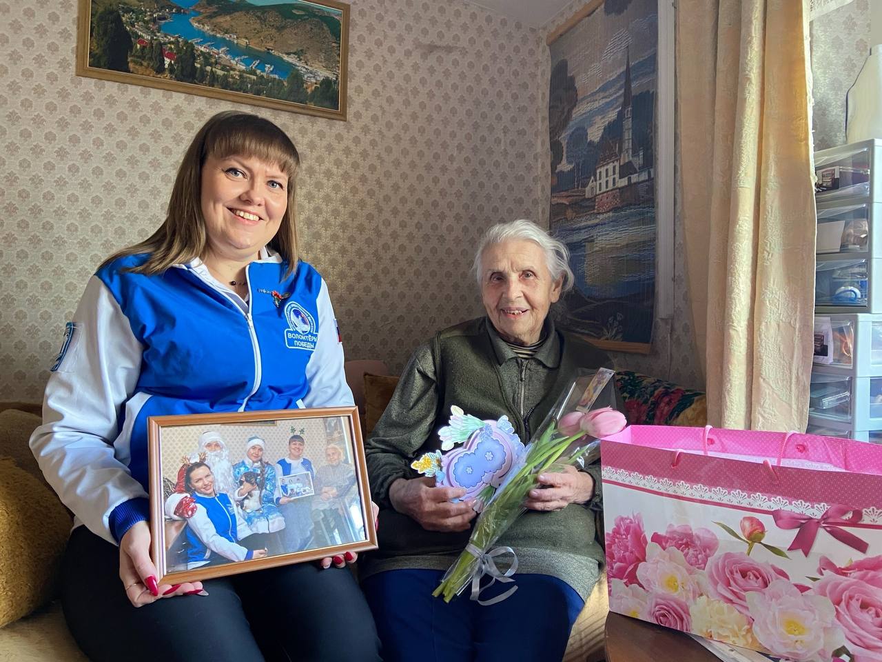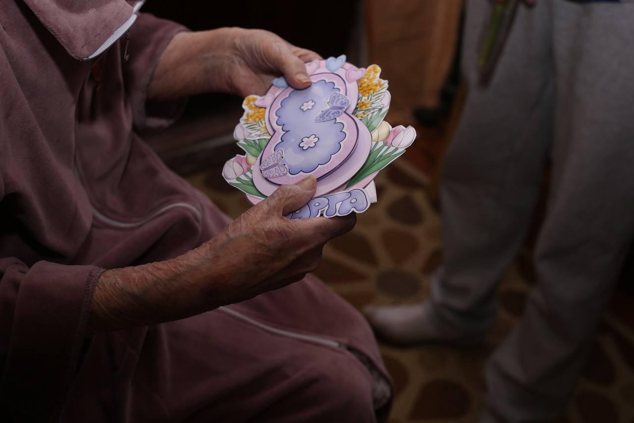 Волонтёры подарили нашим героиням подарки, открытки и весеннее настроение, а взамен получили искренние улыбки, добрые слова и жизненную мудрость.