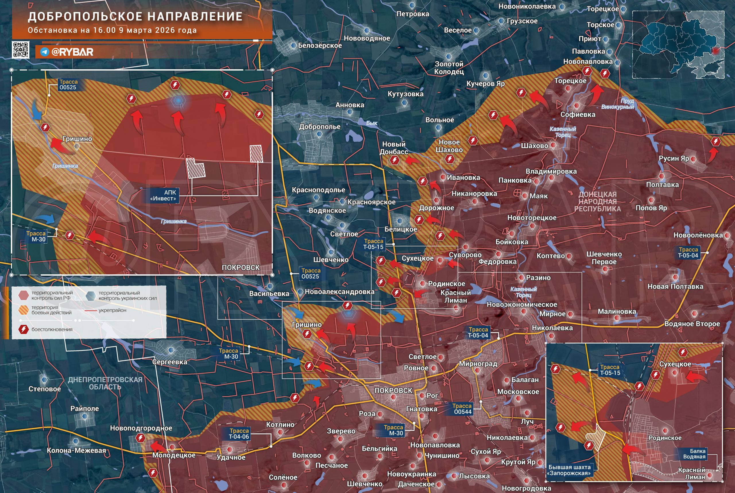 Онлайн-карты доступны по подписке на map.rybar.ru