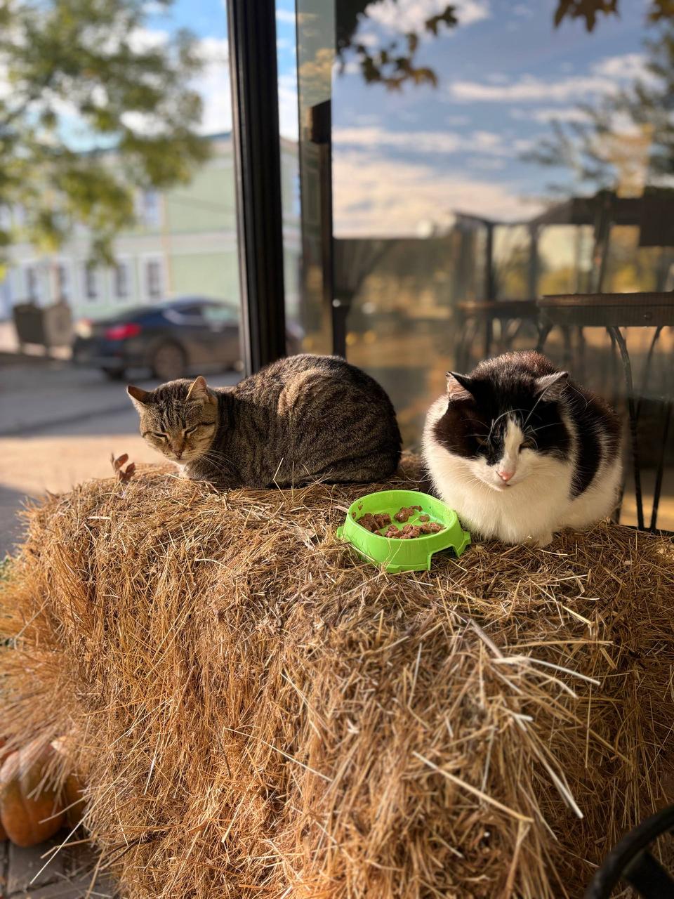 Особенно популярна трёхцветная кошка Муля, завоевавшая любовь посетителей своим дружелюбным характером. Сотрудники заботятся о питомцах и установили рядом с кофейней «Кошкин дом».