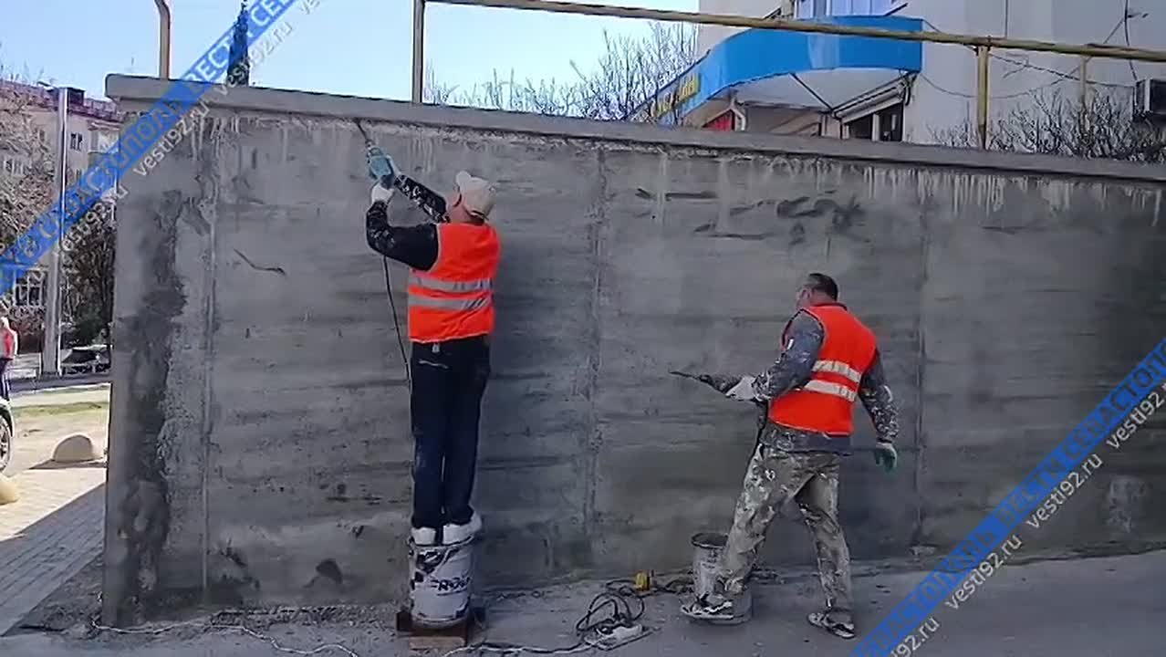 На улице Вакуленчука, в районе дома №2 строители ремонтируют подпорные стены