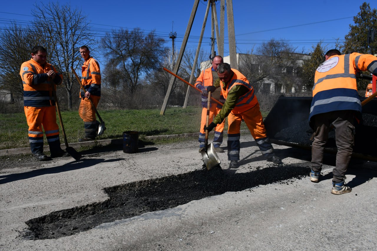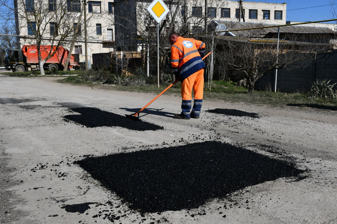 Красногвардейский филиал райавтодора активно ведет работы по ямочному ремонту дорог.