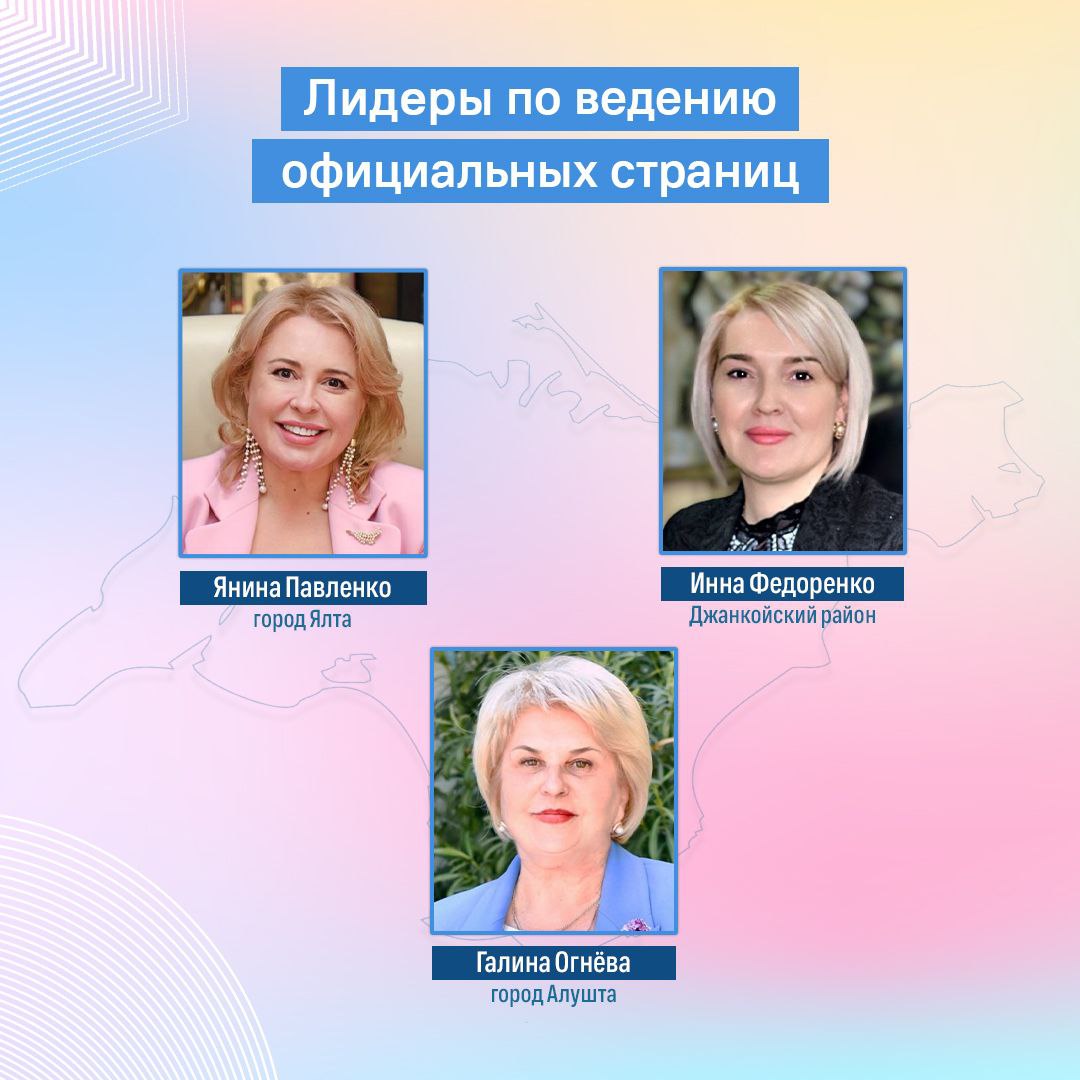 Учитывались представленность в соцсетях, 3 количественных показателя и качество контента по 9 критериям. Первое место рейтинга заняли социальные сети главы администрации Ялты Янины Павленко. Вторую строчку рейтинга заняла глава администрации Джанкойского района Инна Федоренко, а третью – глава администрации Алушты Галина Огнёва.