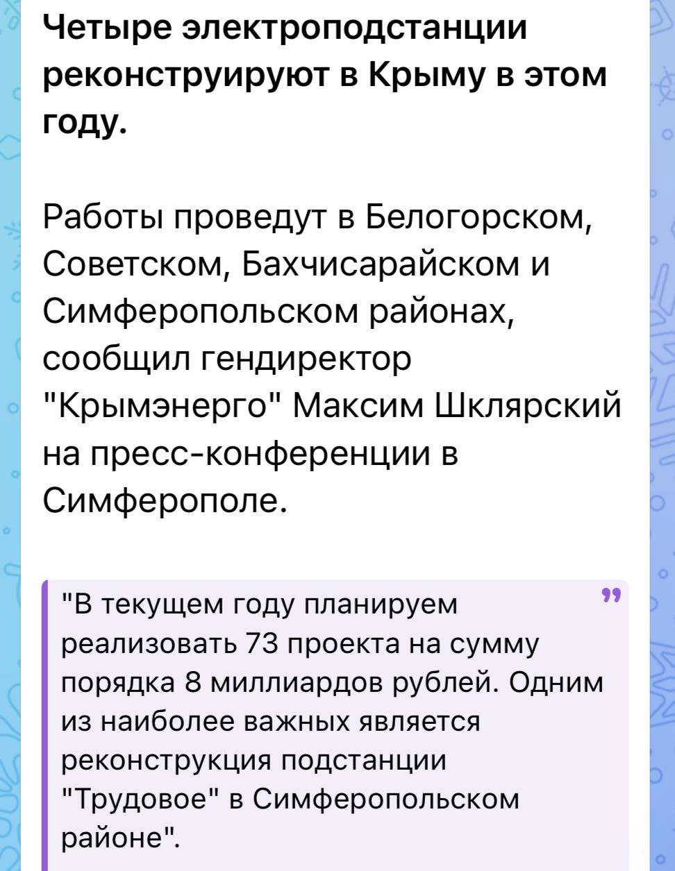 Надеюсь, к тому моменту, когда реконструкция на крымских подстанциях будет окончена, хутор перестанет существовать и нести угрозу и Крыму, и материковой России.