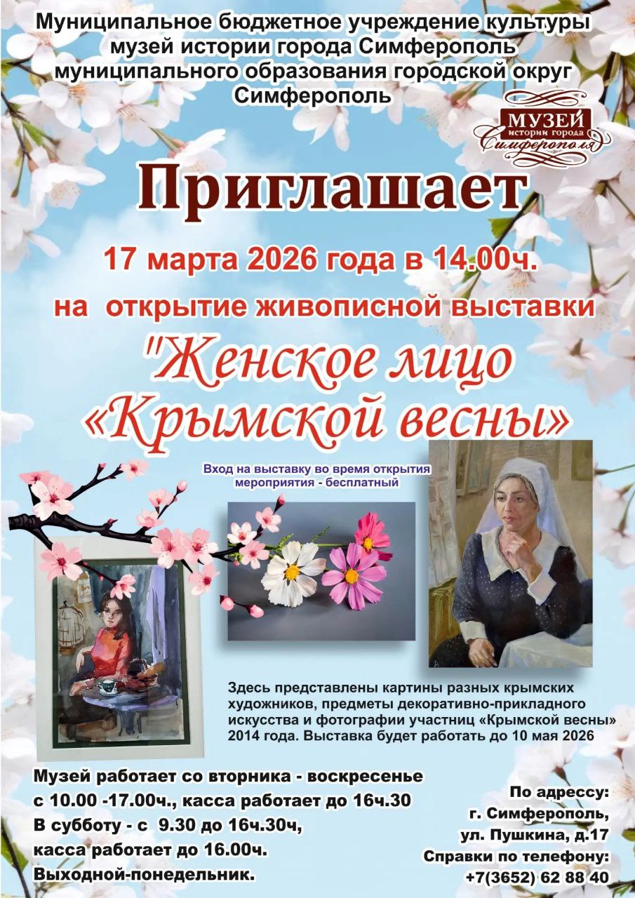 17 марта 2026 года в 14:00 в Музее истории города Симферополя состоится торжественное открытие живописной выставки «Женское лицо Крымской весны».