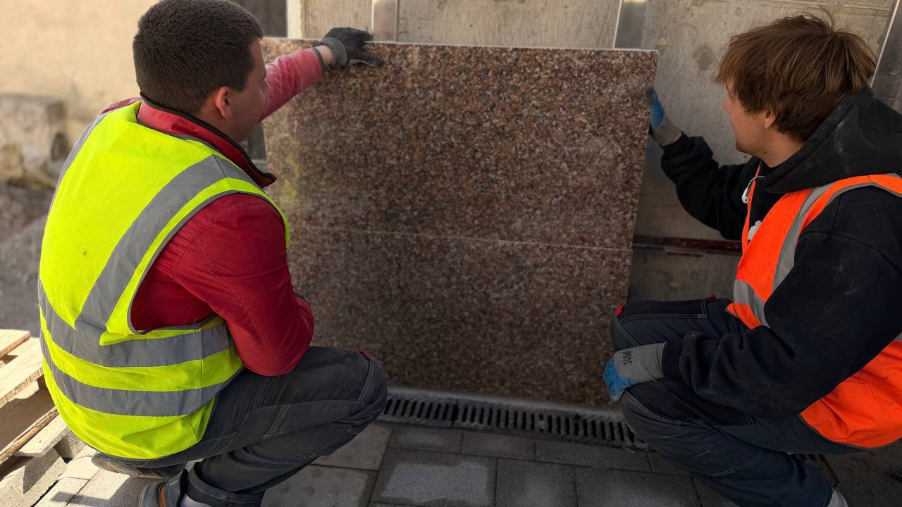 Подрядчик приступил к облицовке верхних фасадов подпорных стен гранитными плитами. На эти работы уйдет 2800 квадратных материалов — цвет камня ранее утвердил архитектурно-художественный совет.