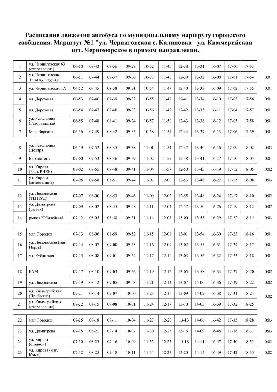 В связи с многочисленными обращениями граждан, администрация Черноморского района вносит изменения в график движения общественного транспорта по маршруту №1.
