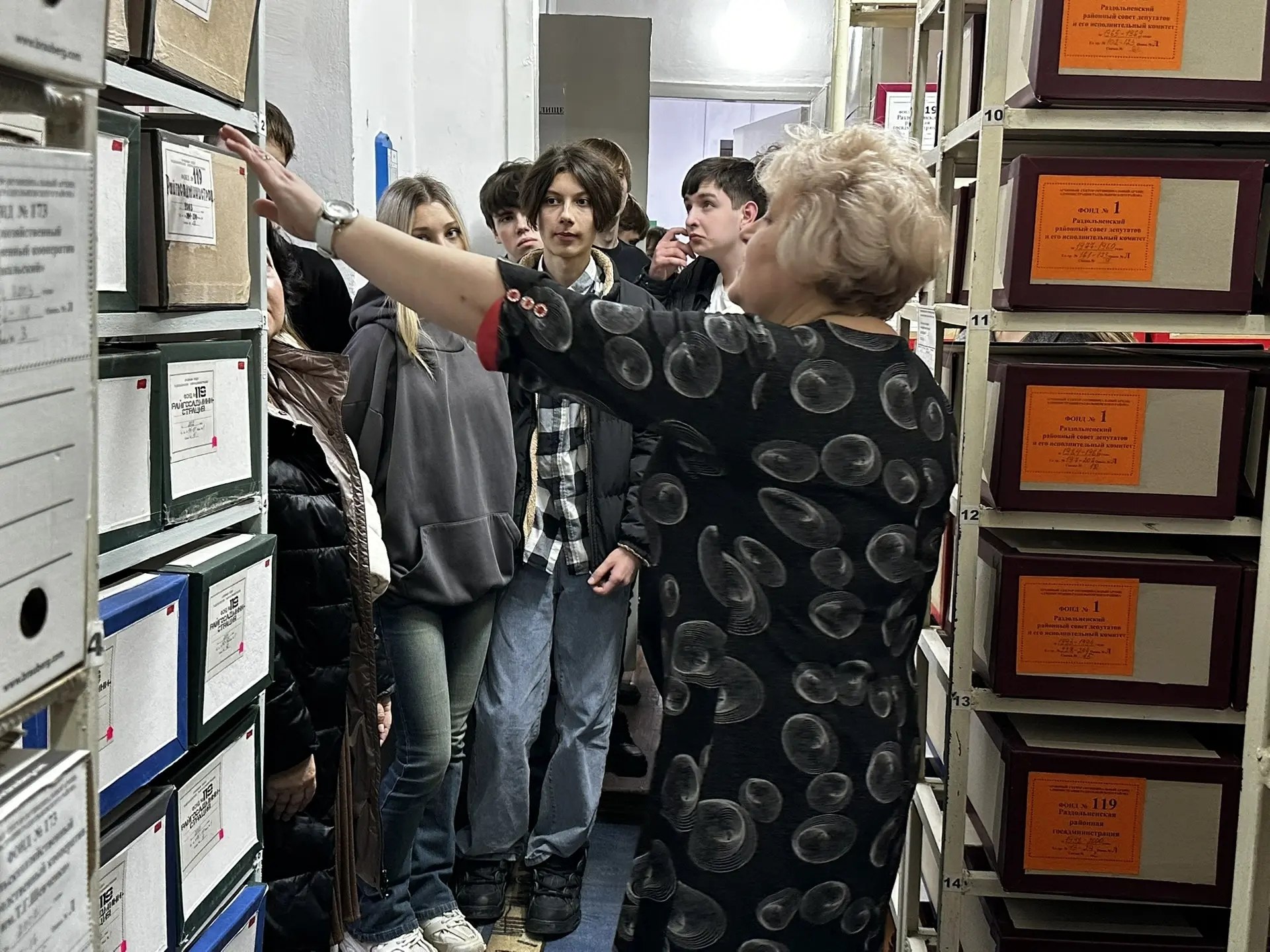 Кроме того, в муниципальном архиве проведена экскурсия для учащихся Раздольненской школы-лицея №1 им. А. И. Кузнецова. Цель мероприятия – рассказать ребятам о работе архива, раскрыть его значение для сохранения исторической памяти и показать перспективы работы в архивных учреждениях.
