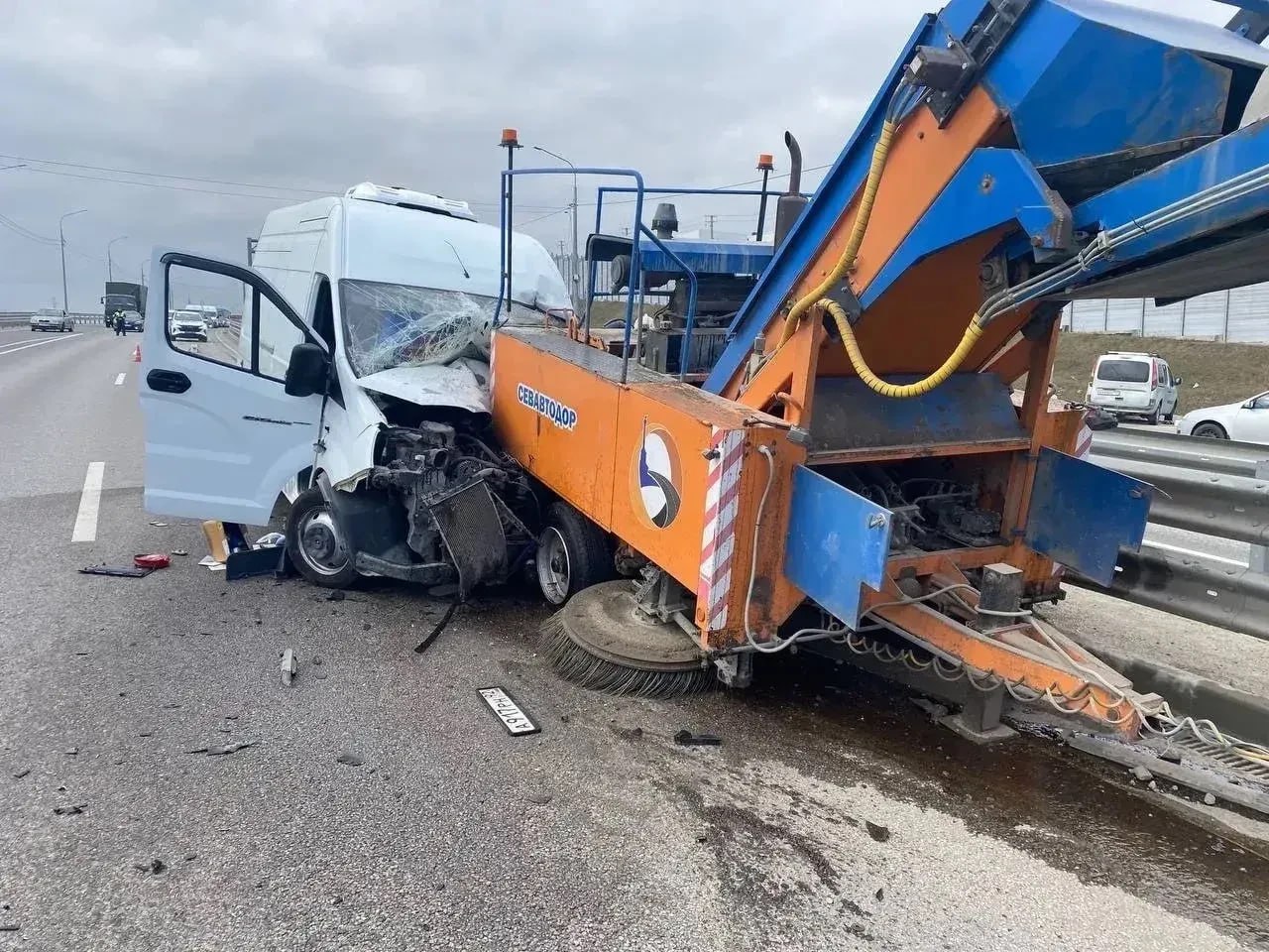 Водитель микроавтобуса влетел в спецтехнику и пострадал в Севастополе.